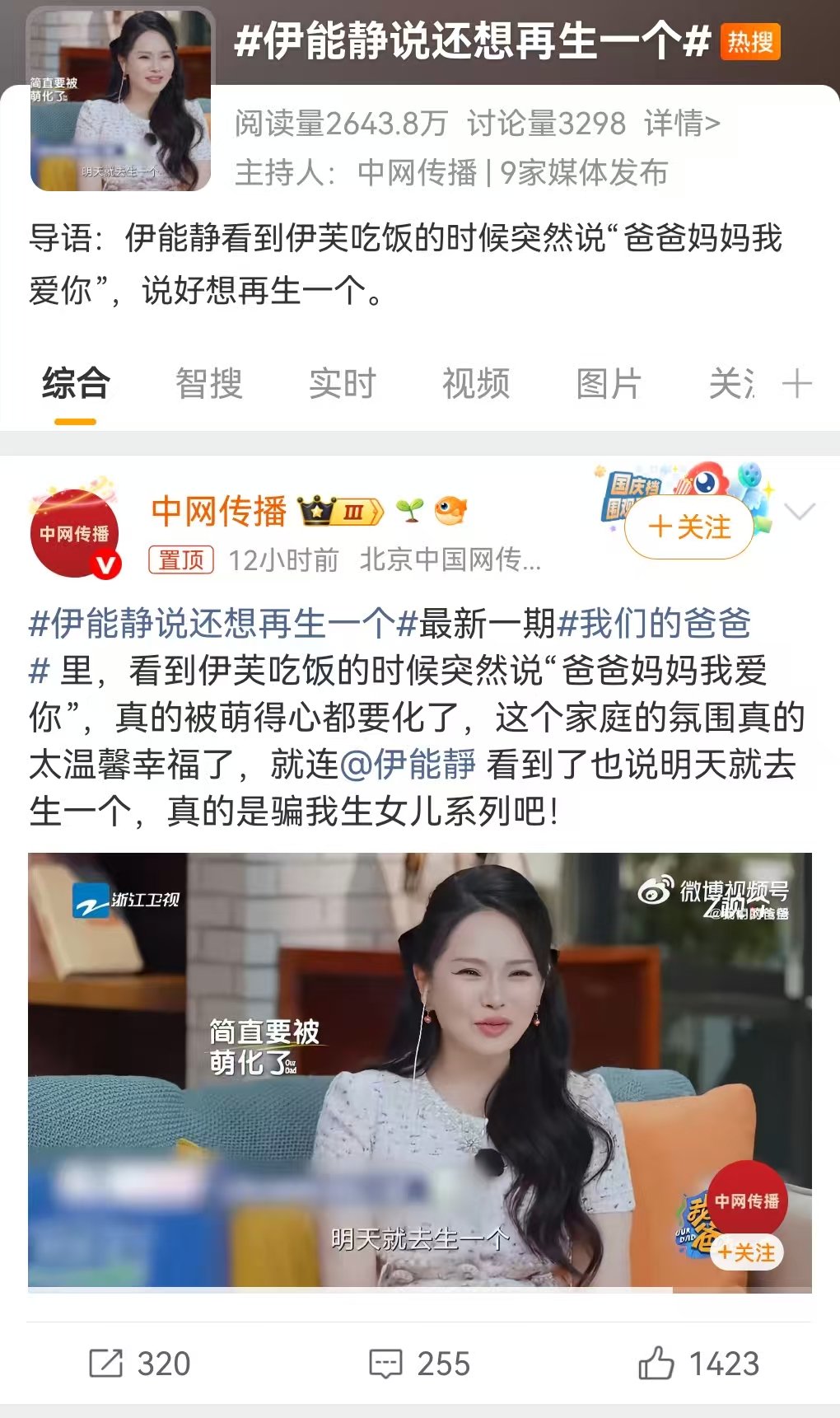 近况方面,伊能静逐渐淡出公众视野,更多时间用来陪伴家人,偶尔分享家庭日常,此次因想再生孩子的想法登热搜,再次让大家看到她对孩子的极致喜爱。