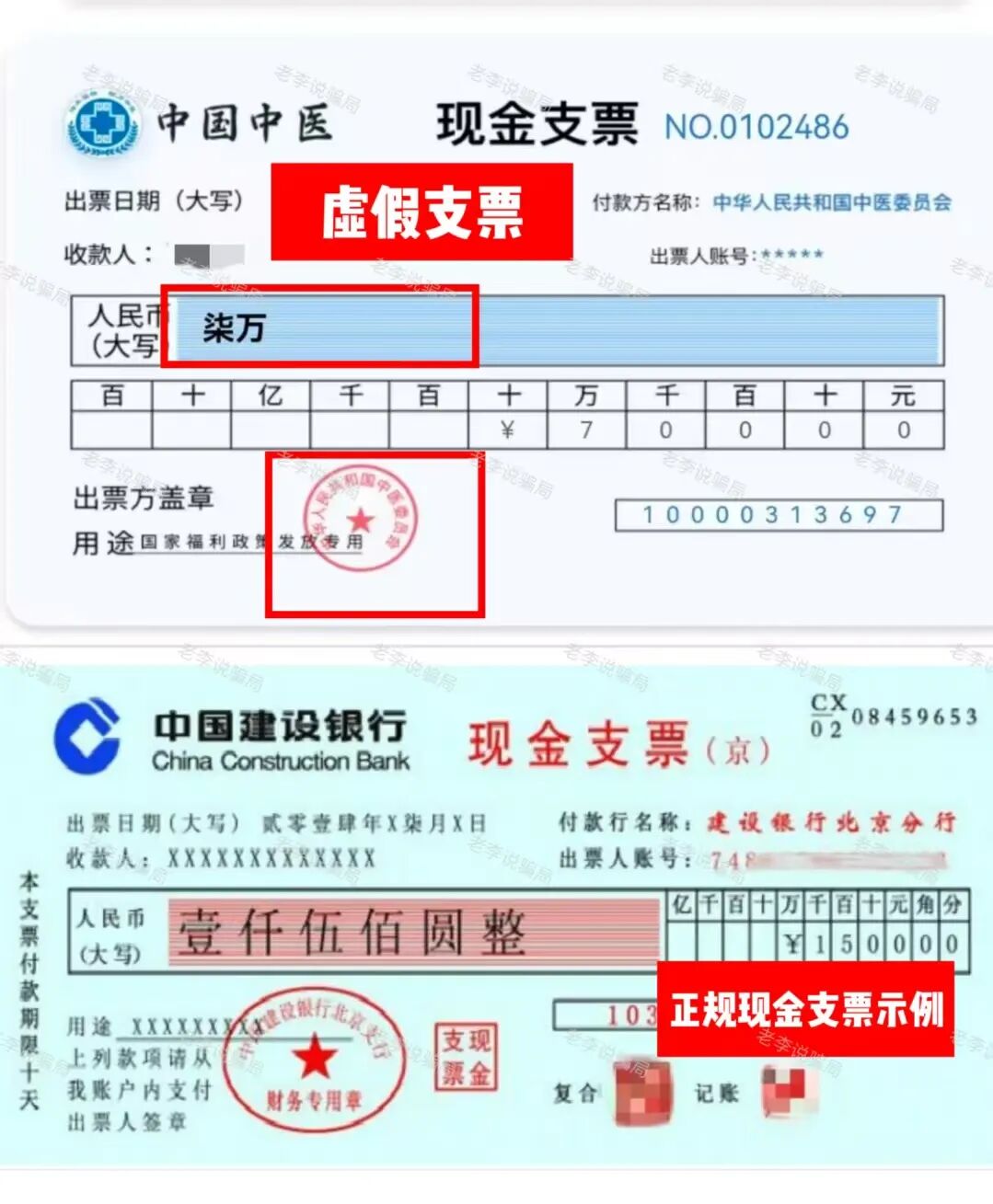 同时,正规现金支票由银行统一印制,抬头根本不可能以“中国中医现金支票”这类非标准的名称命名。