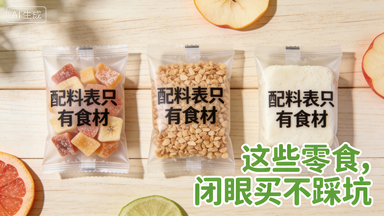 看配料表:越短越好,第一位必须是天然食材,无添加糖、盐、防腐剂;