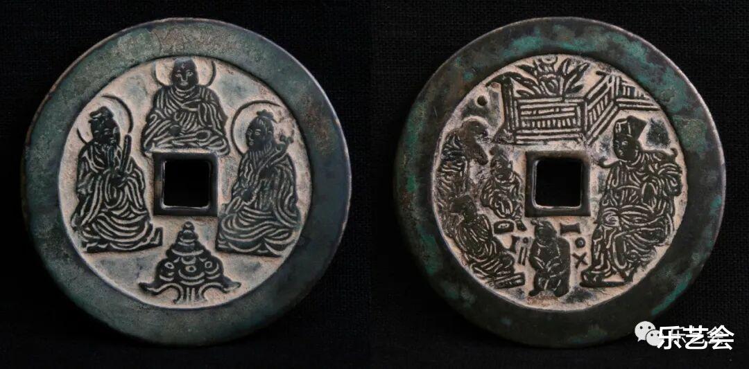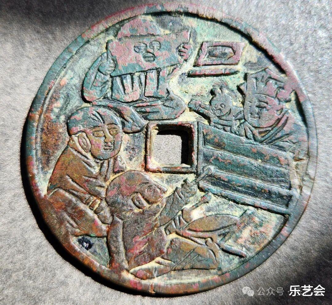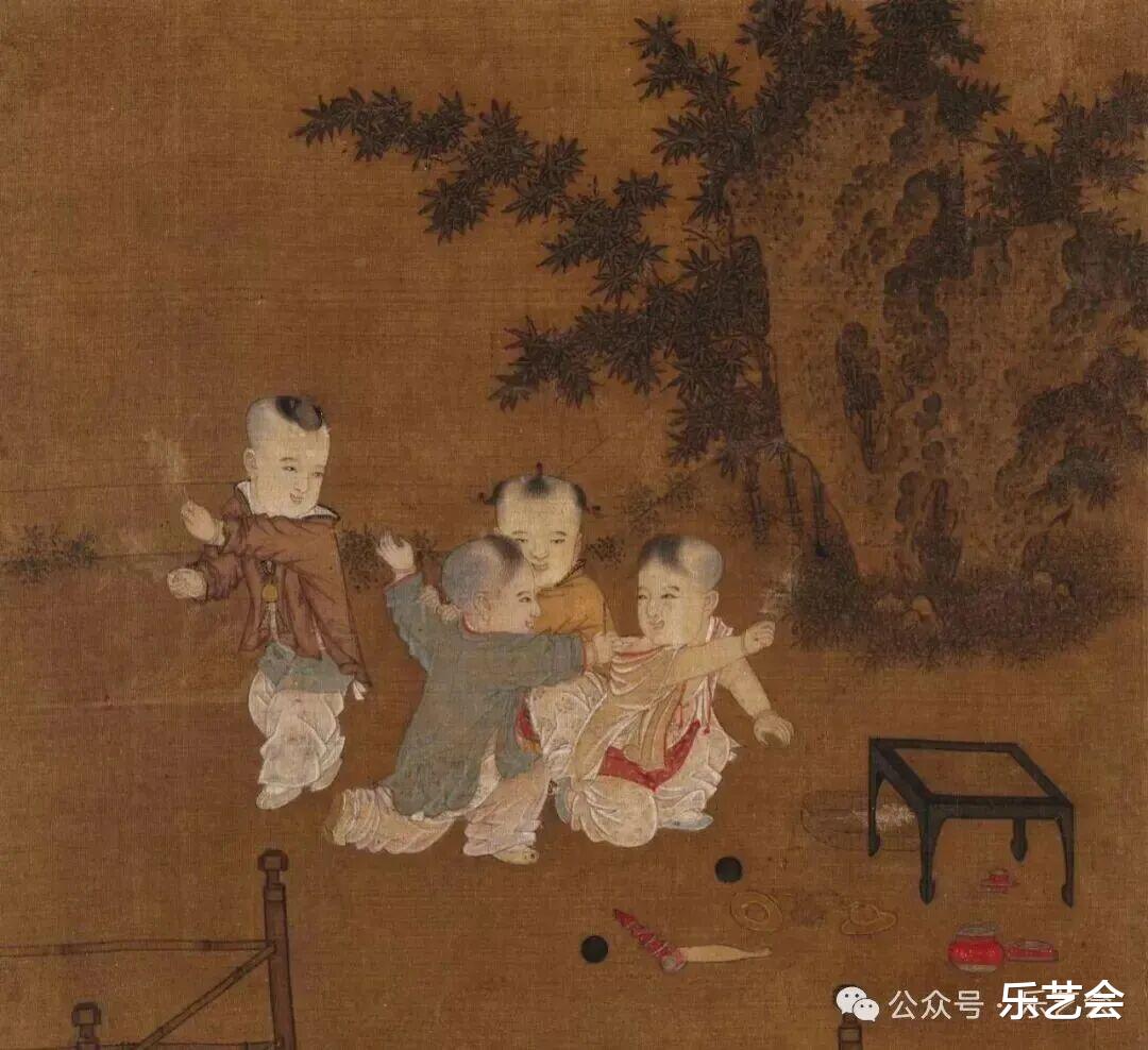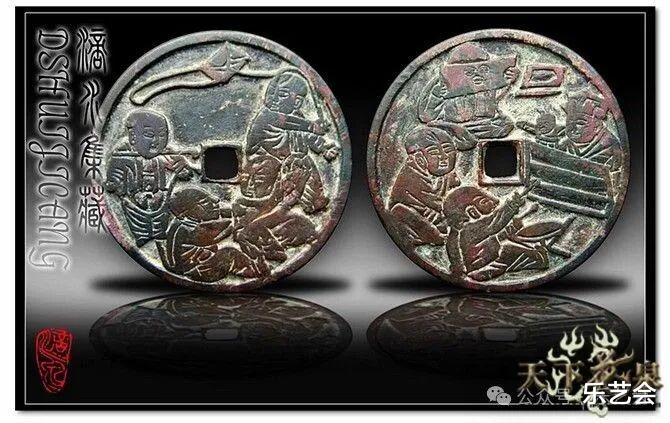 1、庭院嬉戏中的婴戏自玩宋代前后,庭院嬉戏,庭院婴戏的图例所在尤多。在花钱上也是如此。在庭院嬉戏的主题情态下,多数为小孩自己嬉戏,很少有大人的介入,尤其是男性成年人的介入。至于妇人加孩子的造型,那属于另一范畴,或表示慈母哺育,或表示多子庇护。比如鬼子母系列。在本文中我们不展开。