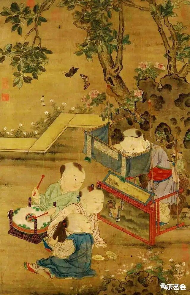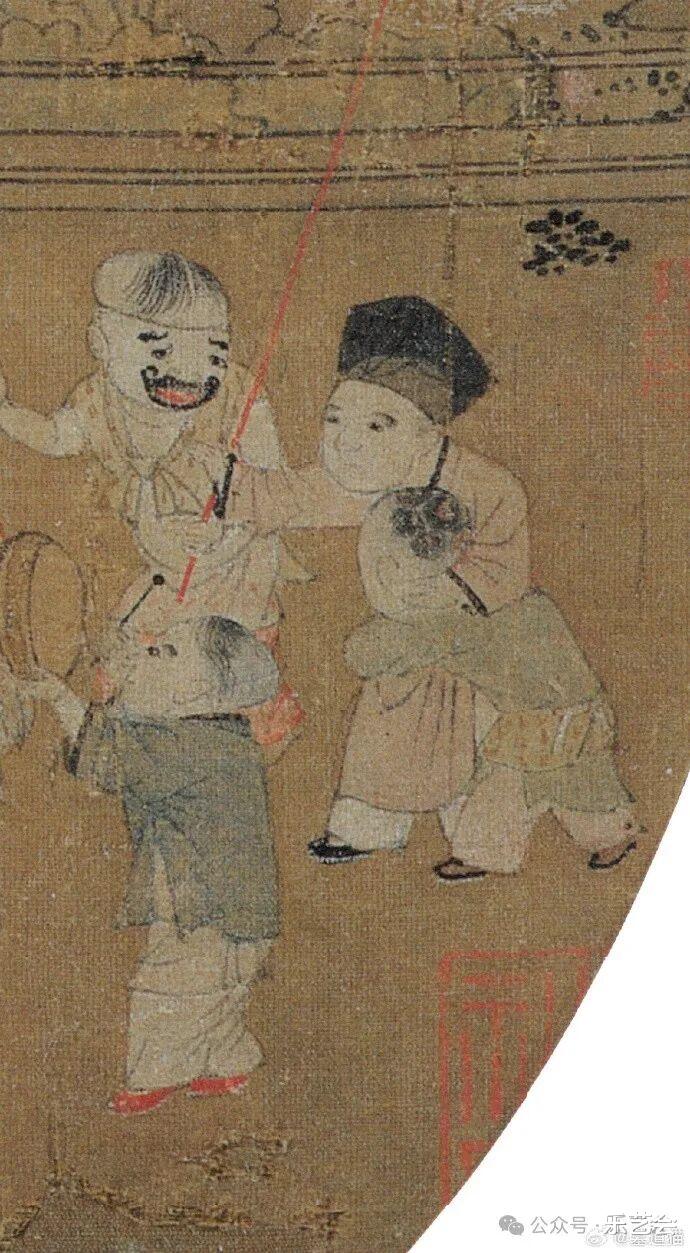 2、婴戏中成人角色扮演此前,我们曾经专题阐述过,中古的转官观念,在中古婴戏艺术图像中,往往一群孩子在玩耍,其中多见有一个头戴破额富贵巾帽的娃娃的存在,这在很多时候并非在装扮成人,而是顽强地赋予着富贵吉祥、未来做官的意义。参见:老赵 管月晖:毬路纹中的转官与小官人的富贵帽