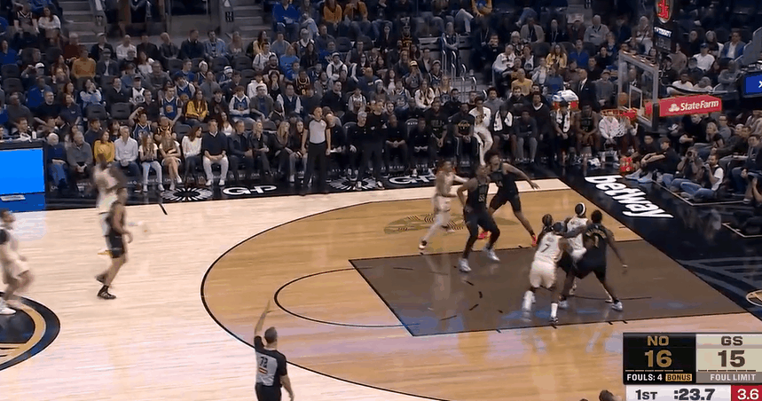 11月30日NBA常规赛,勇士对阵鹈鹕的比赛中。