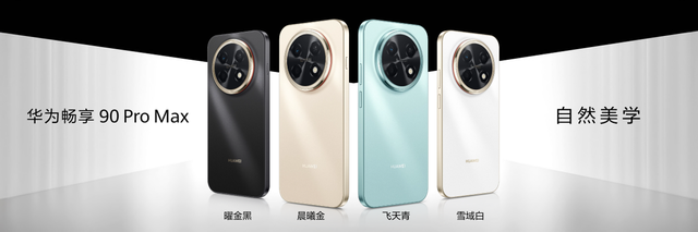 除了三大核心优势,还用两款机型给出了两种不同的美学答案。华为畅享 90 Pro Max以标志性的闪耀星环设计,搭配和谐有序的中轴对称语言,将科技感与秩序感完美融合,拿在手里,便是一眼可辨的质感。而华为畅享 90 Plus则走了另一条路——焕新的镜头Deco与轻薄直屏造型相得益彰,简约中透着利落,时尚而不张扬。