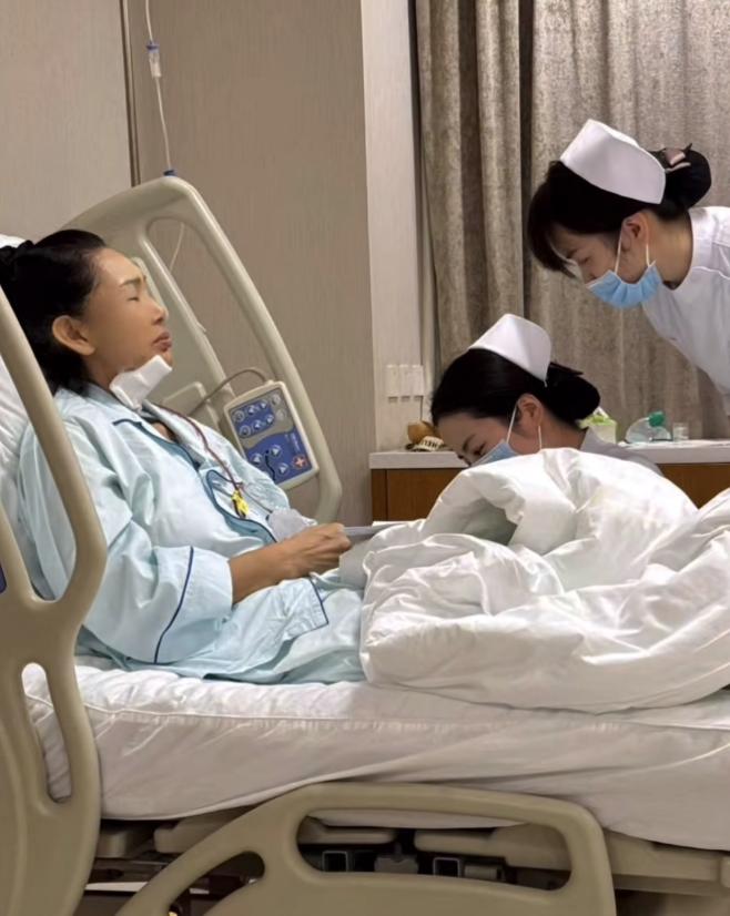 从张咪晒出的术后视频来看,手术结束后她被推进了病房,此时的她还没有醒过来,医护人员耐心的照顾着她。