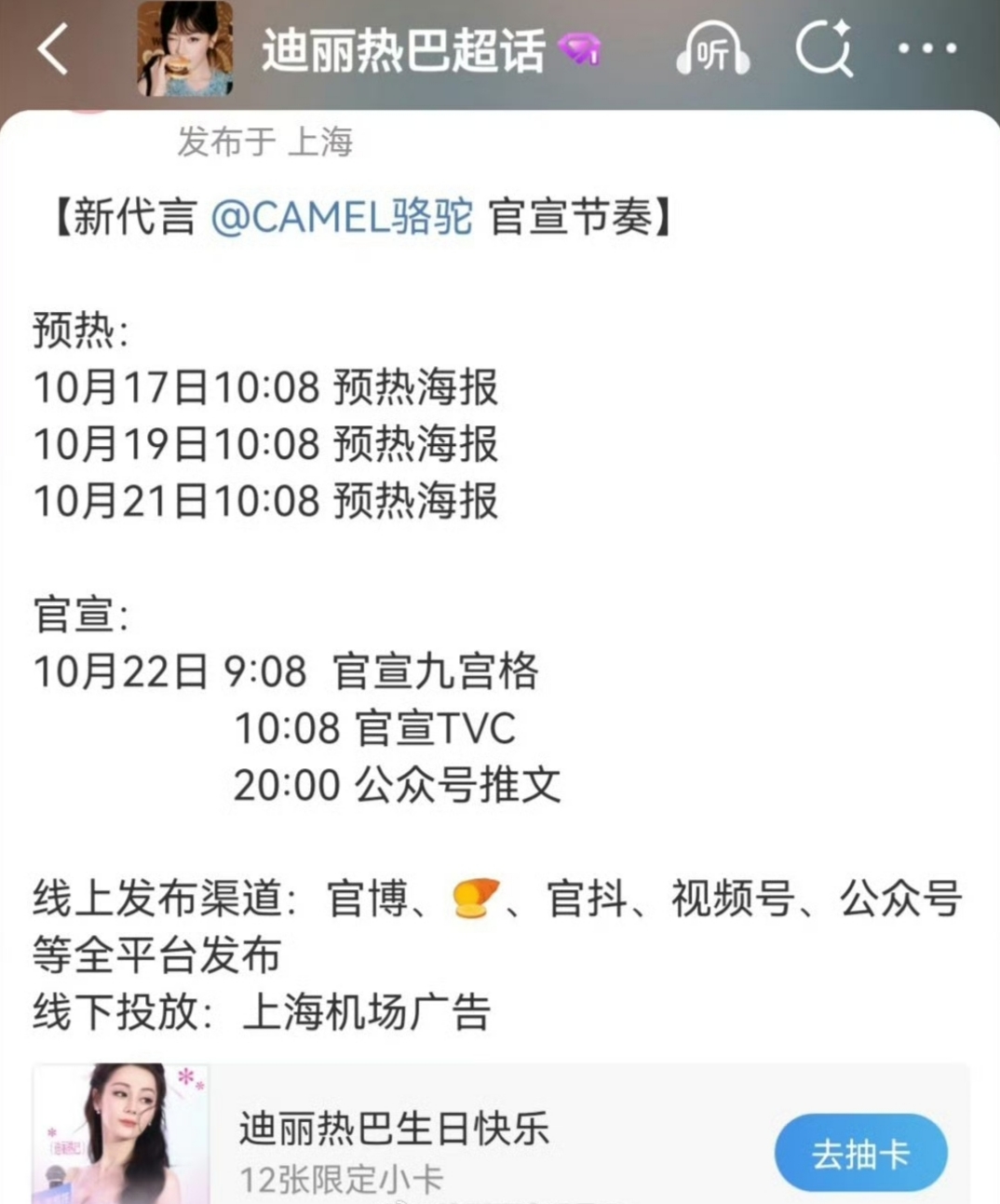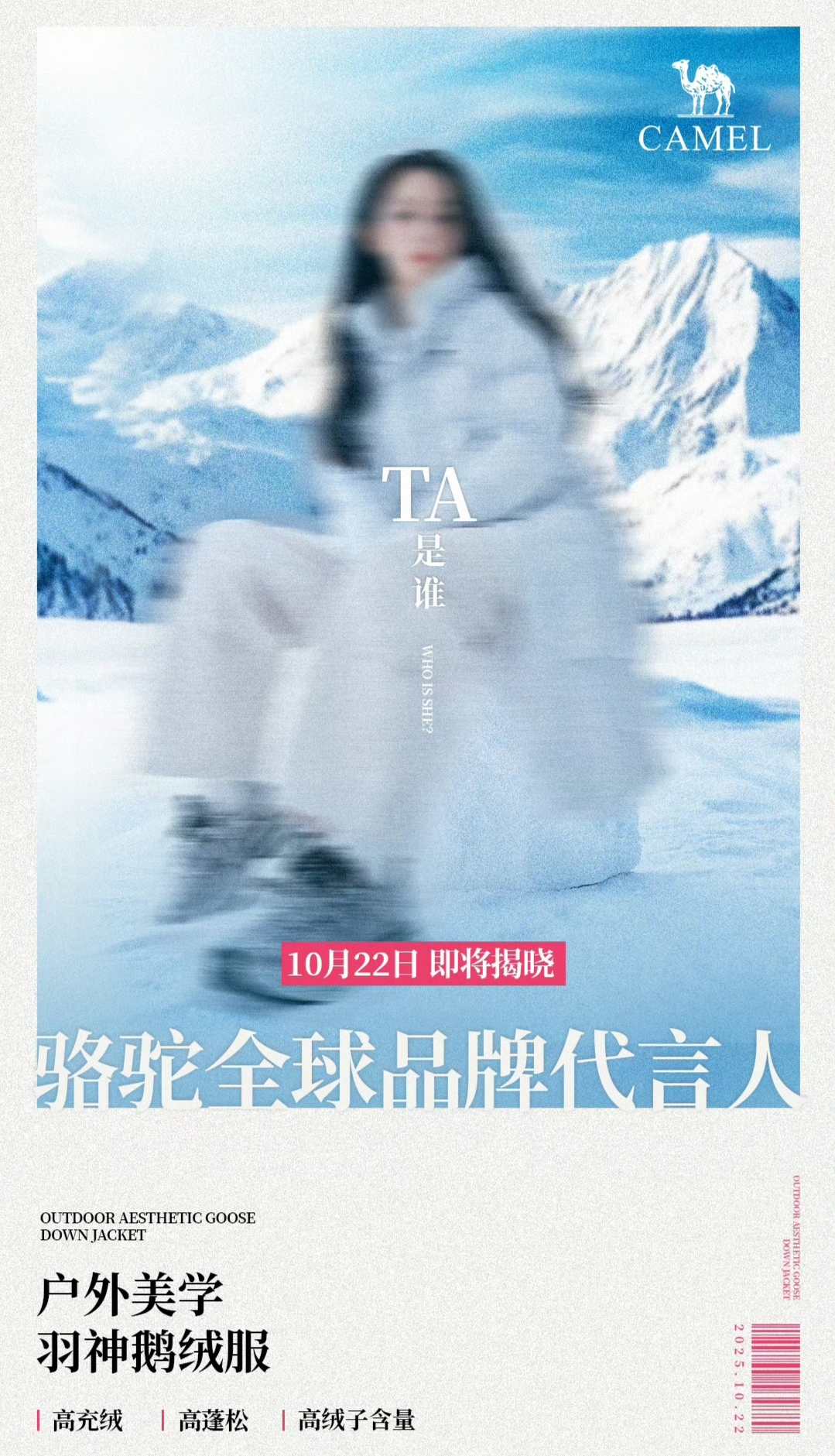 预热从10月17日拉开帷幕。骆驼官方10:08发布预热海报。粉丝们化身“列文虎克”,从海报中扣细节,逐帧分析新代言的“隐藏线索”。更有网友翻出《利剑玫瑰》剧照对比:“邓妍主任的冲锋衣和海报款简直同款!品牌这是把剧综红利吃到极致!”