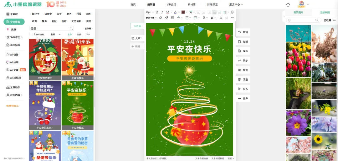节日推文对视觉冲击力和开发效率要求极高。小墨鹰的核心优势在于,它将专业设计流程产品化: