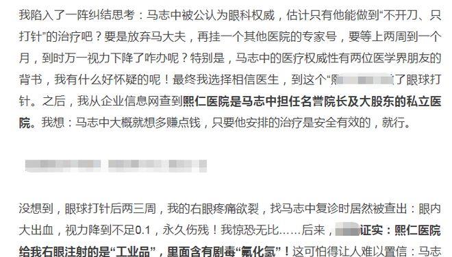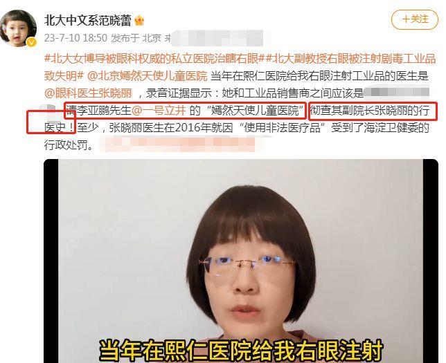 大家抱着这种想法,去关注了这个当事人的账号,关注之后才发现这个人曝光的并不是嫣然医院本身,而是医院院长张晓丽,根据她的说法,当年她的眼睛只是轻度视网膜脱落,但是在选择治疗时她没有选择在三甲医院开刀,而是选择了朋友介绍的私立医院治疗。