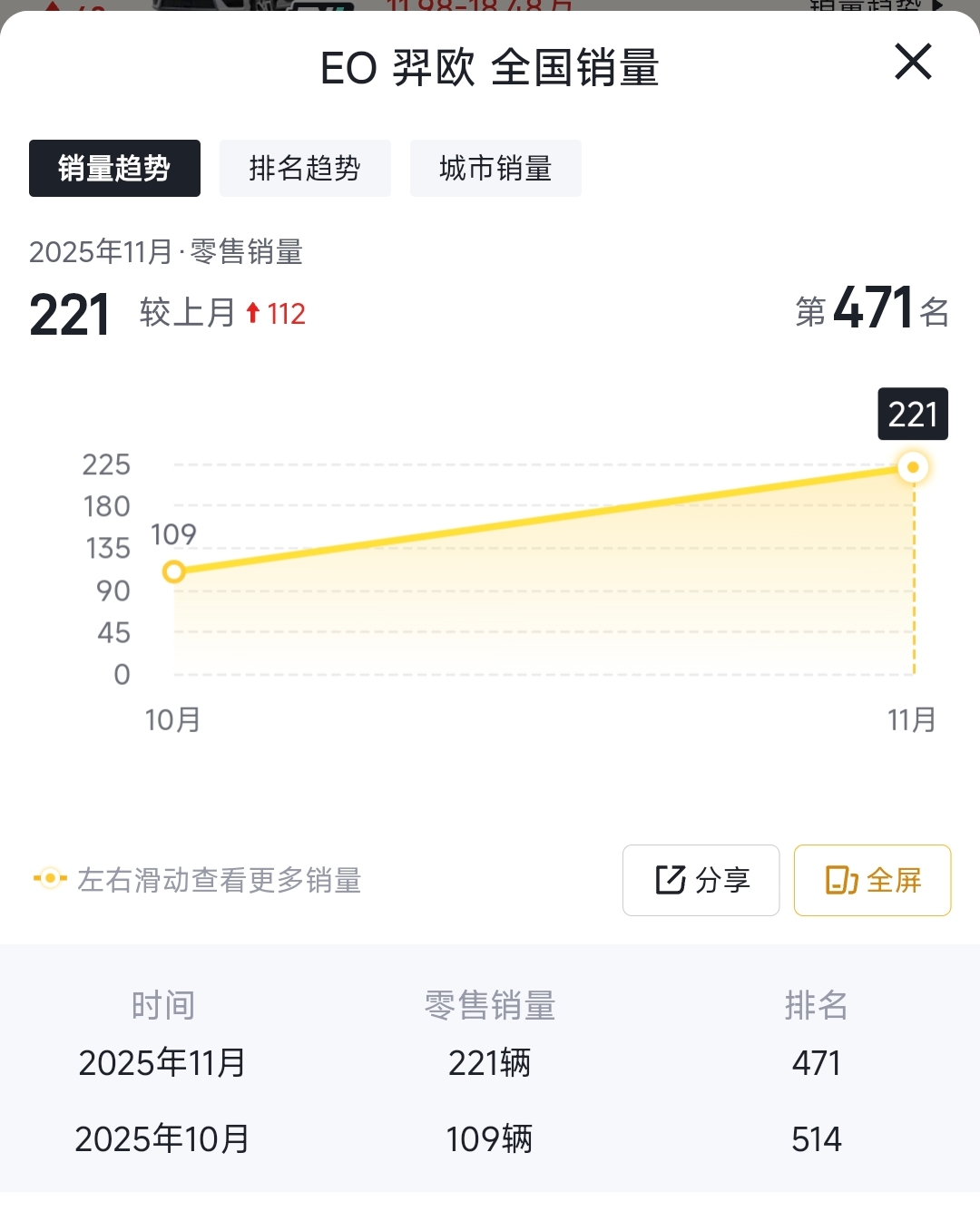 221辆的销量远低于同级竞品:比亚迪元PLUS、银河E5等自主车型首月销量已超千辆,连同为合资的大众ID.3也能维持月销数千。EO弈欧的惨淡表现,彻底戳破了合资品牌"背靠全球技术就能稳赢"的幻想。