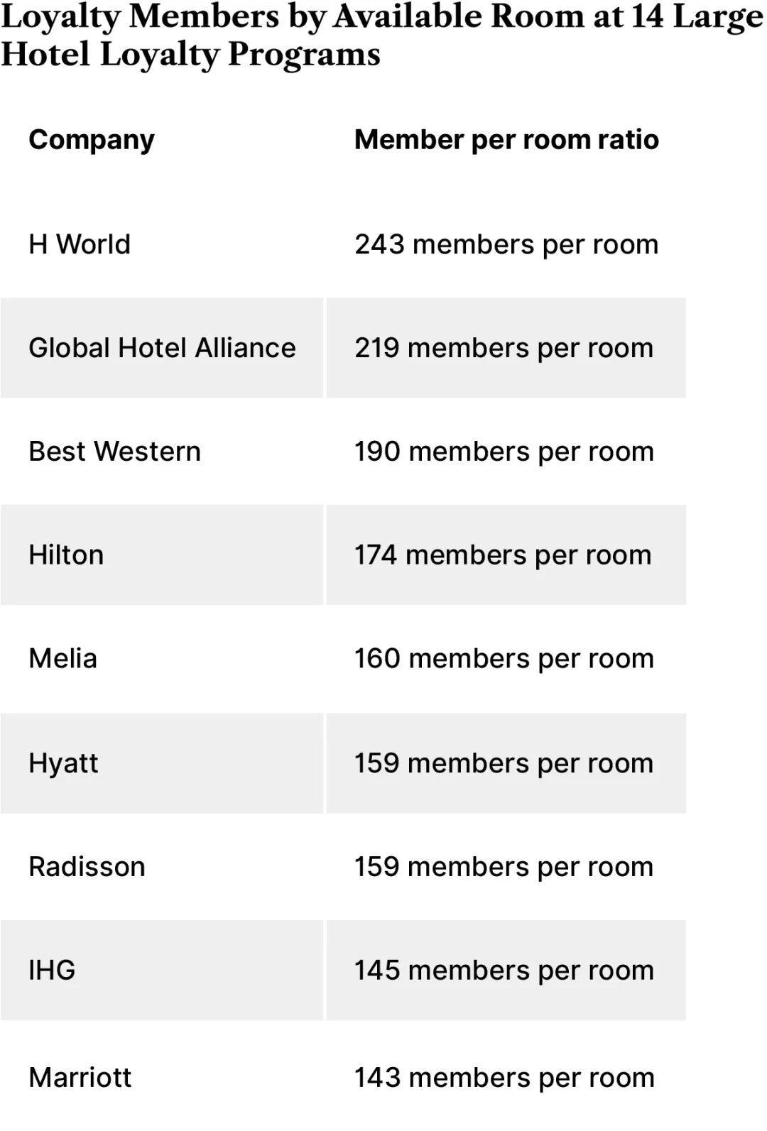 图注:Skift《按“每间客房对应会员数”排名的14大忠诚度计划排名》