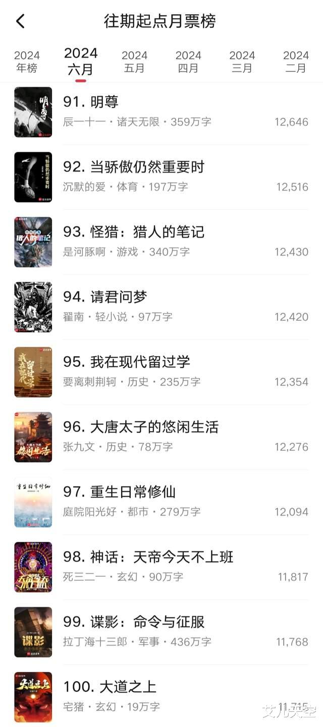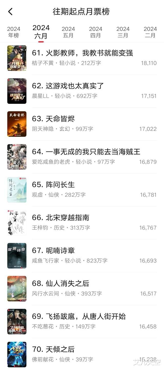 六月结束,简单看一下这个月起点月票榜的最终结果。现在起点月票榜的打榜越来越明面化,大家看看即可。
