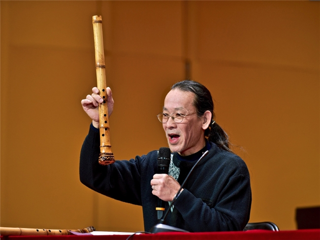 蔡鸿文作为海峡两岸首位尺八专业硕士,是一位集演奏、制作与推广于一身的多元艺术家。他早年师从多位国际尺八大师,深研日式演奏技法和制作工艺,并巧妙融入中国传统箫管的音色审美,形成了贯通中西的独特制器与演奏风格。他所制作的尺八与南箫,音色苍凉而富有空间感,低音浑厚深远,高音清透空灵,尤其擅长表现深沉的禅意与宁静意境,在当代民族乐器中独具一格。