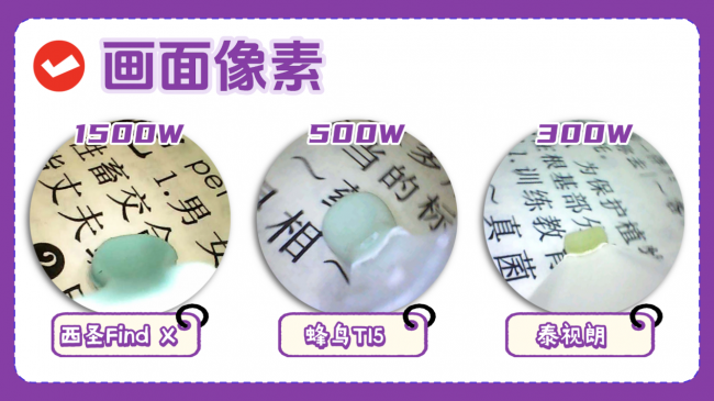 实测结果:西圣Find X>蜂鸟T15>泰视朗