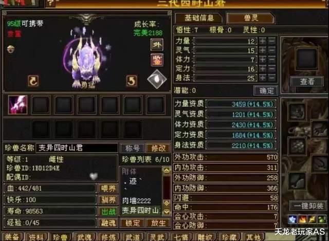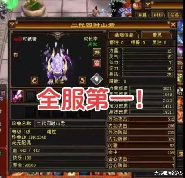 各位老铁,【不忘初心】新鲜出炉的极品四时山君,外功宝宝资质上限再次刷新——裸资质3021!勇猛的!基本上目前天龙宝宝资质