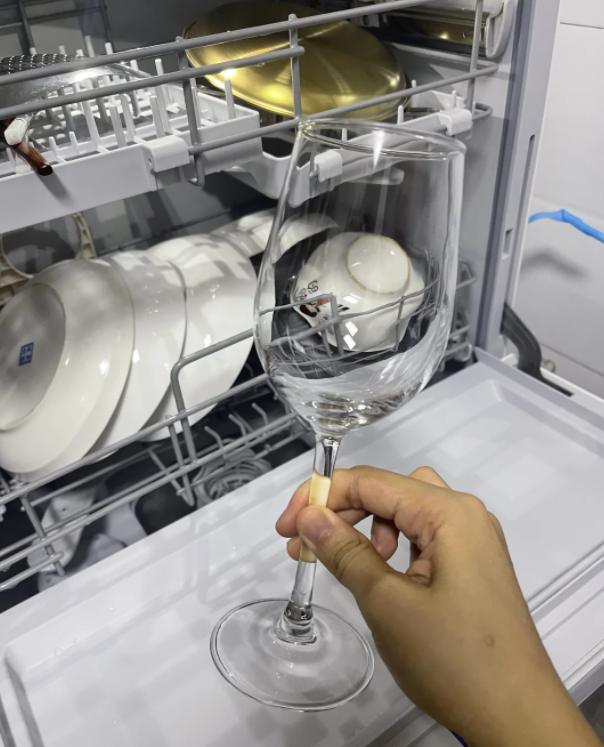 首先是清洁能力,平时碗不多,基本都用标准洗,普通污渍洗得很干净,带色素的一次也能冲掉,特别是洗玻璃材质的,洗完加烘干变得亮晶晶的,看着特别舒服,最难洗的就是鸡蛋羹的碗,第一次竖着放没洗干净,第二次直接倒扣在最底下对着大喷淋臂,还是标准洗,马上就干净。