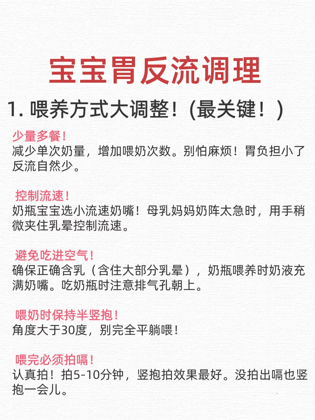 · 喂后竖抱:喂奶后竖抱20-30分钟,不要立即平放