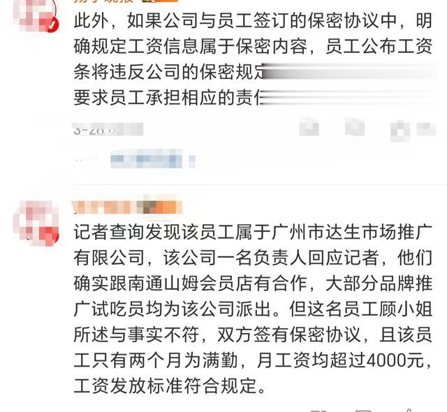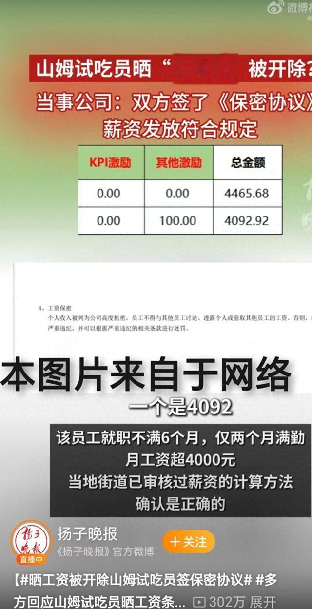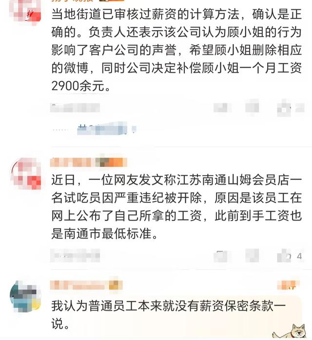 江苏南通山姆会员店的试吃员顾小姐不会想到,一张工资条截图竟让她丢了饭碗。