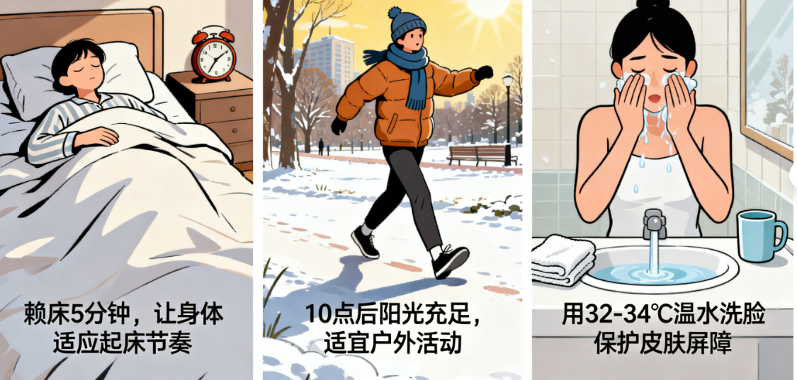 • 温水洗脸:避免用刺骨的冷水洗脸,以免突然的冷刺激引发血压骤升。