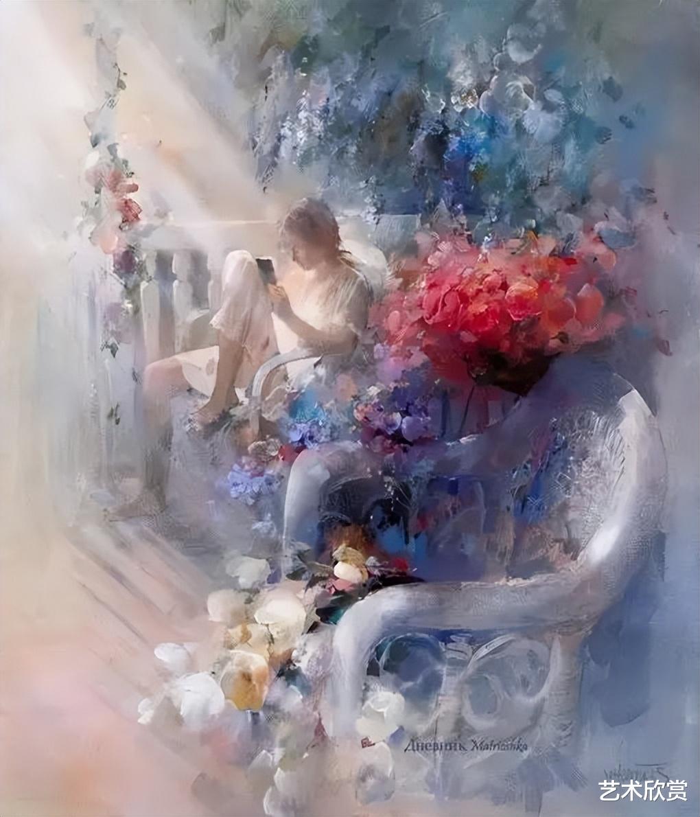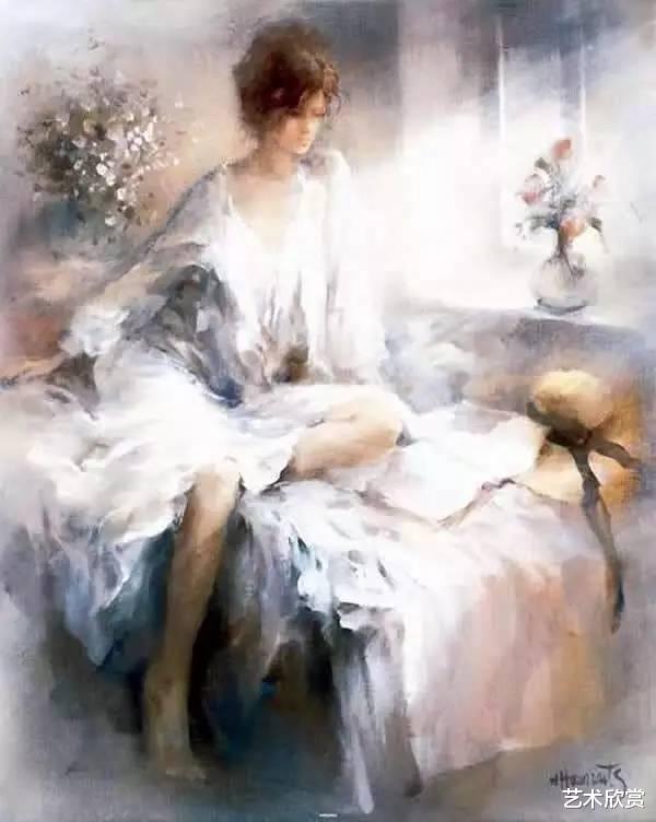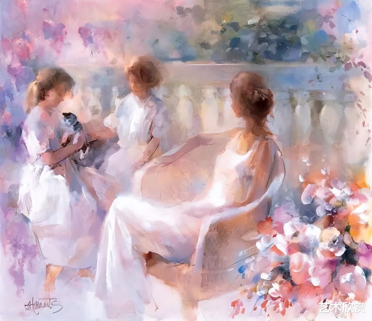 汉雷斯的笔下,女子与花,交相辉映,人儿因花而更显娇媚,花因人儿而愈发生动。这不仅仅是色彩的交融,更是情感与灵魂的对话,每一笔都蕴含着画家对美的无限向往与追求。她们的面庞,在光影的轻抚下,若隐若现,如同晨雾中的露珠,既清澈又带着一丝不易察觉的忧郁,让人心生怜爱,又难以触及。
