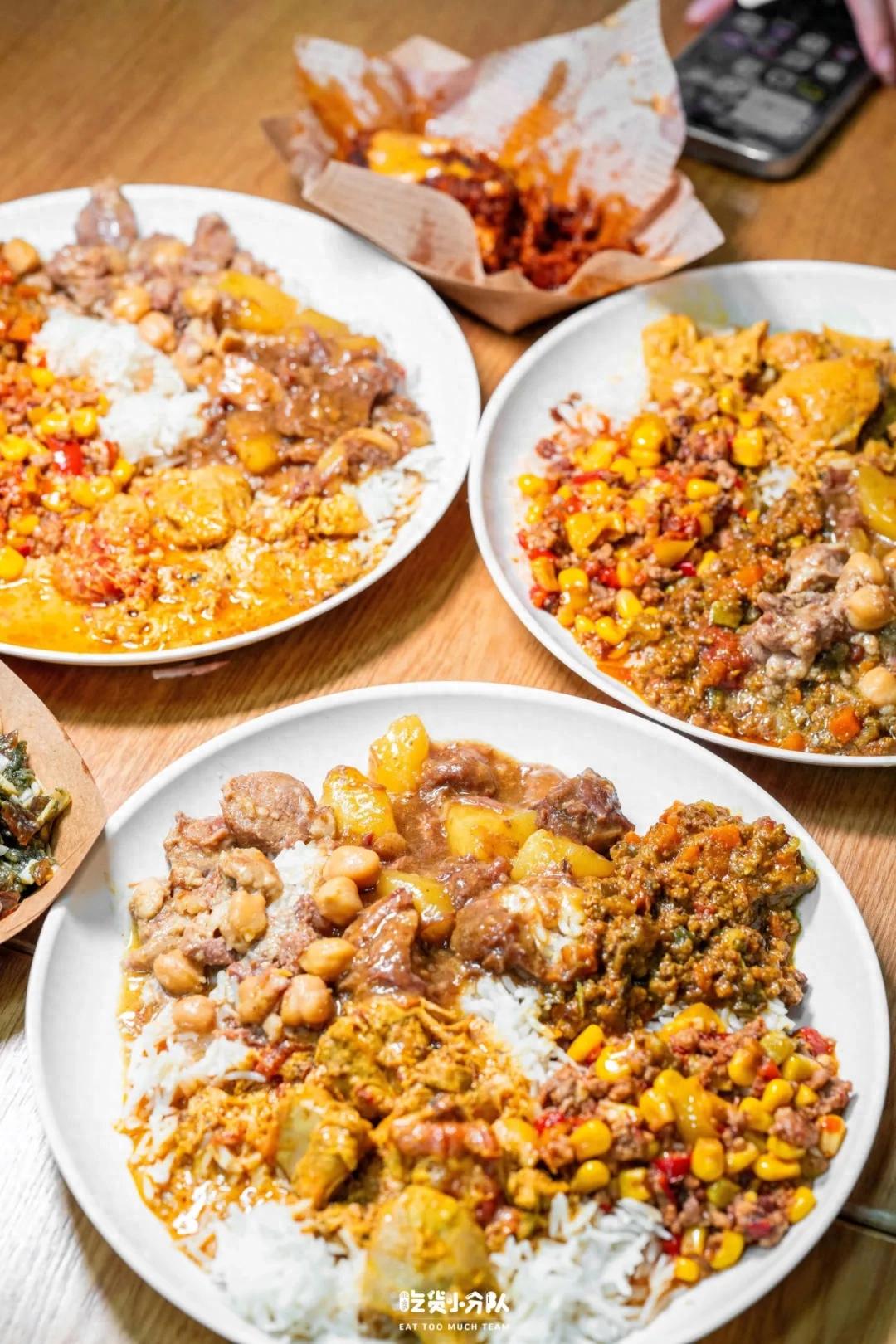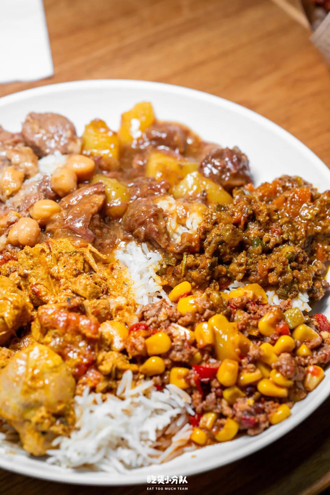 【咖喱炖菜】39元一位,多种咖喱可以拼盘,主食有米饭、土豆泥、薯条三种选择,不够吃可以接着续。