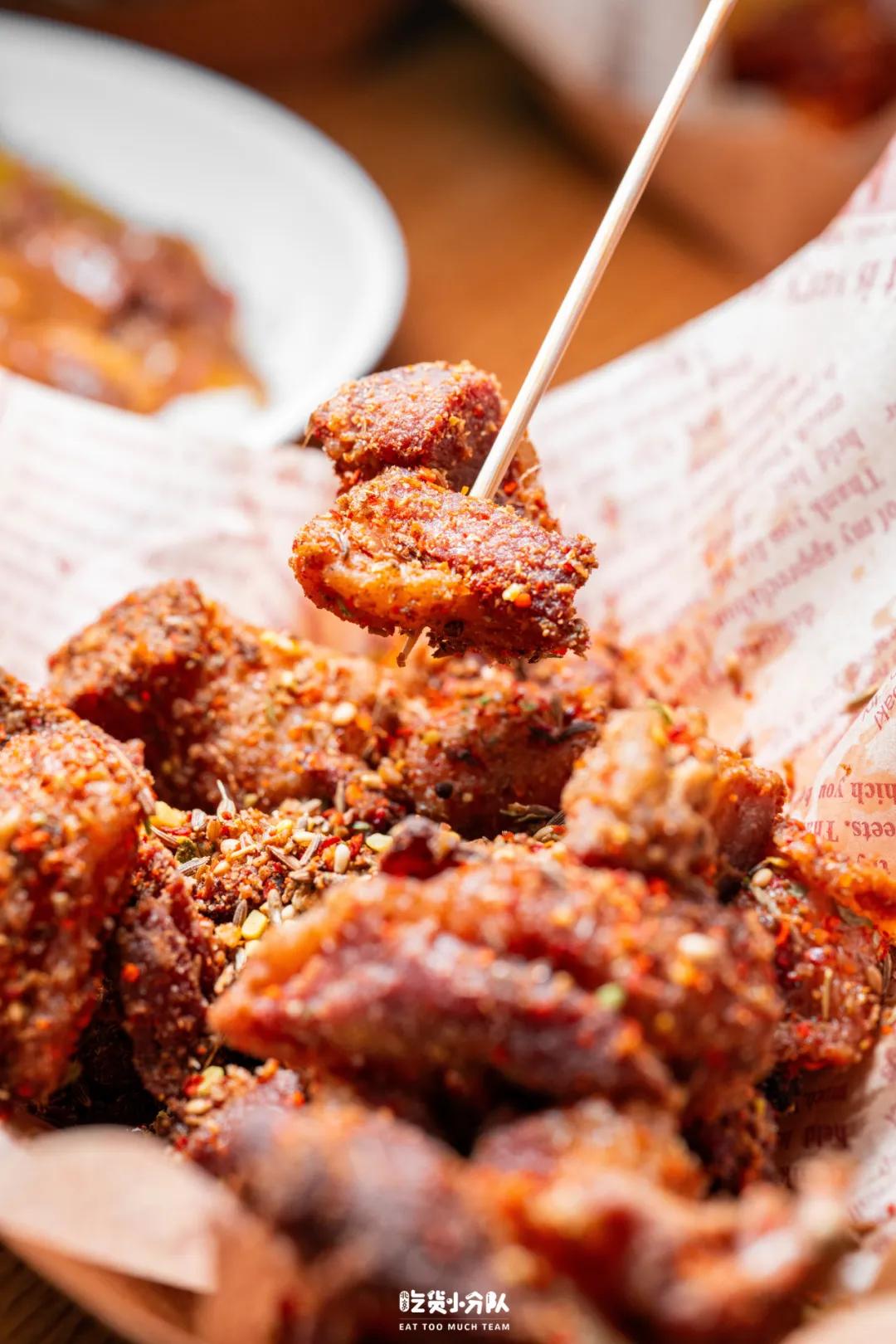 【可汗炸羊肉】36元一份,和39元的咖喱自助比起来略显奢侈~好在羊肉份量给的比较足,炸得火候刚好,孜然辣椒的调味和羊肉串味道相似,适合朋友一起分食。