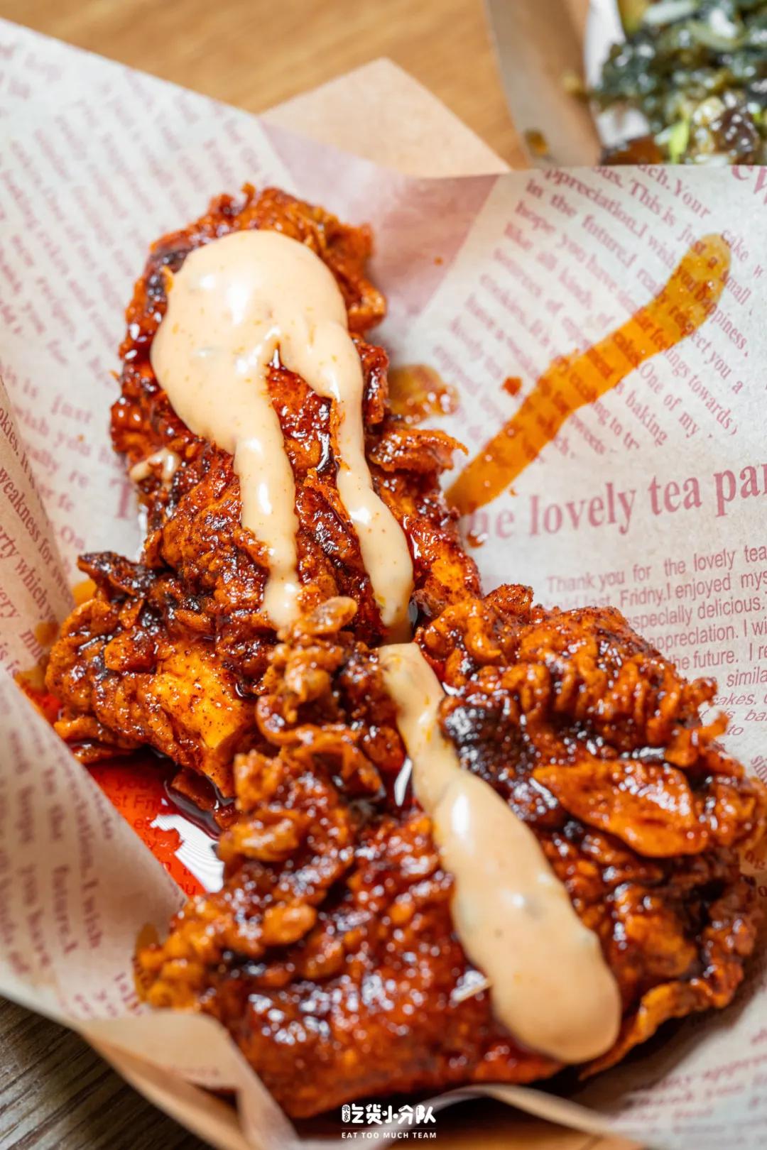 【纳什维尔炸鸡】9.9元一块,很适合一人食。炸鸡有原味和辣味两种口味,现点的需要等待现做,外皮很酥脆,里面是整块的鸡胸肉。