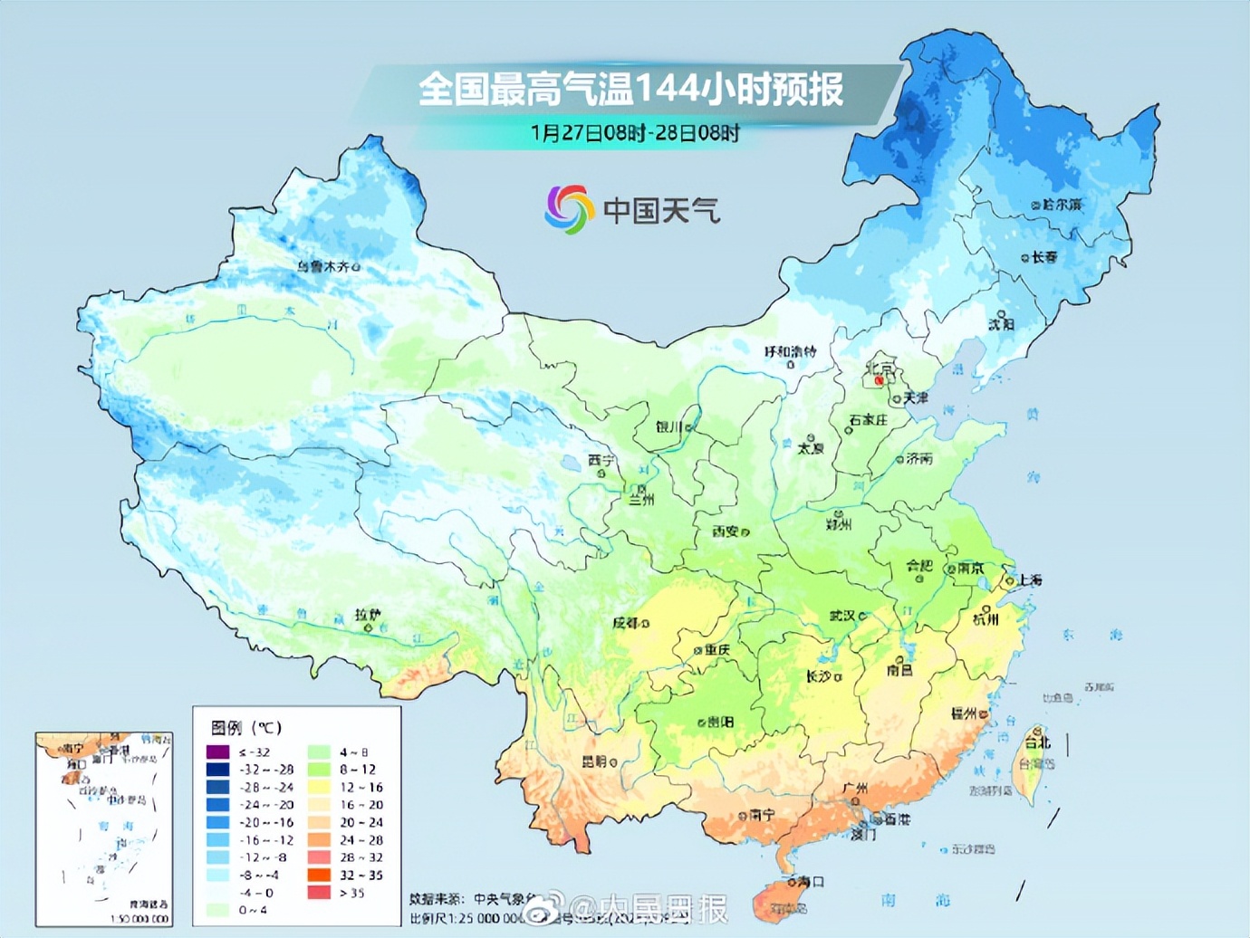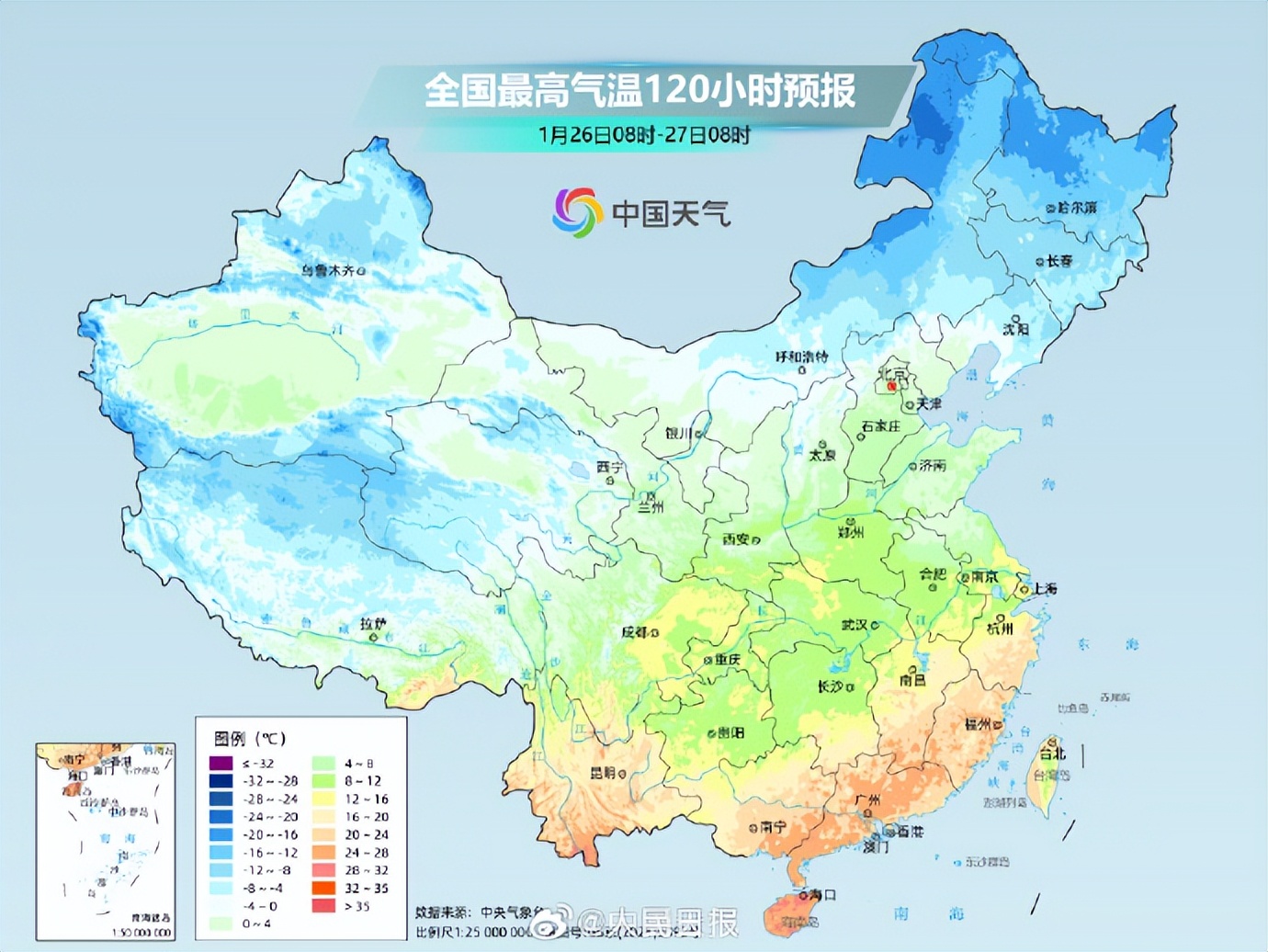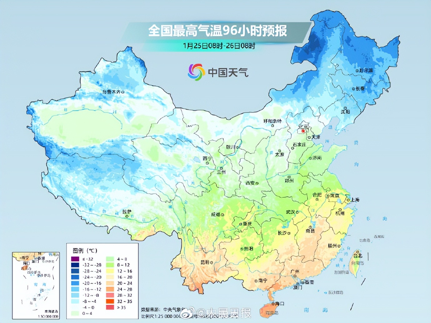 25日前,中东部地区的气温呈现回升态势。25-27日,新一股冷空气将影响江南及其以北地区,并带来4~6℃的降温,局地降幅可达8℃左右,西北地区东南部、华北、东北地区、黄淮等地有小雪,黄淮部分地区有中到大雪,河南西南部、湖北西部等地局部有冻雨。