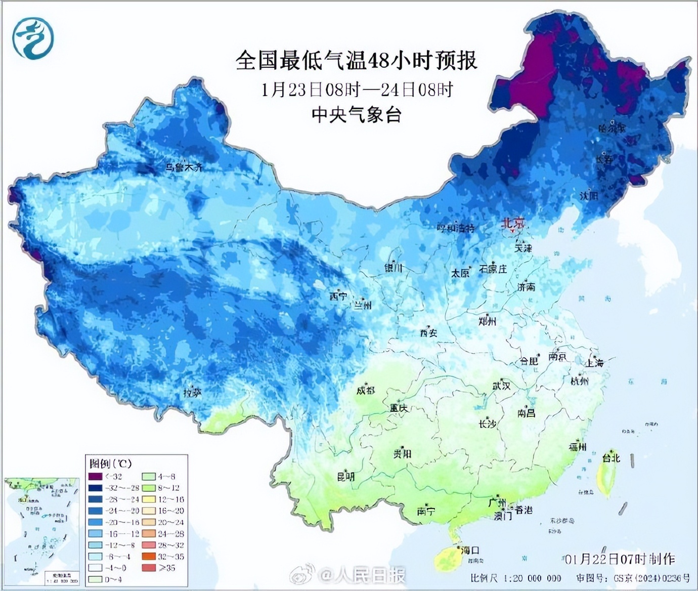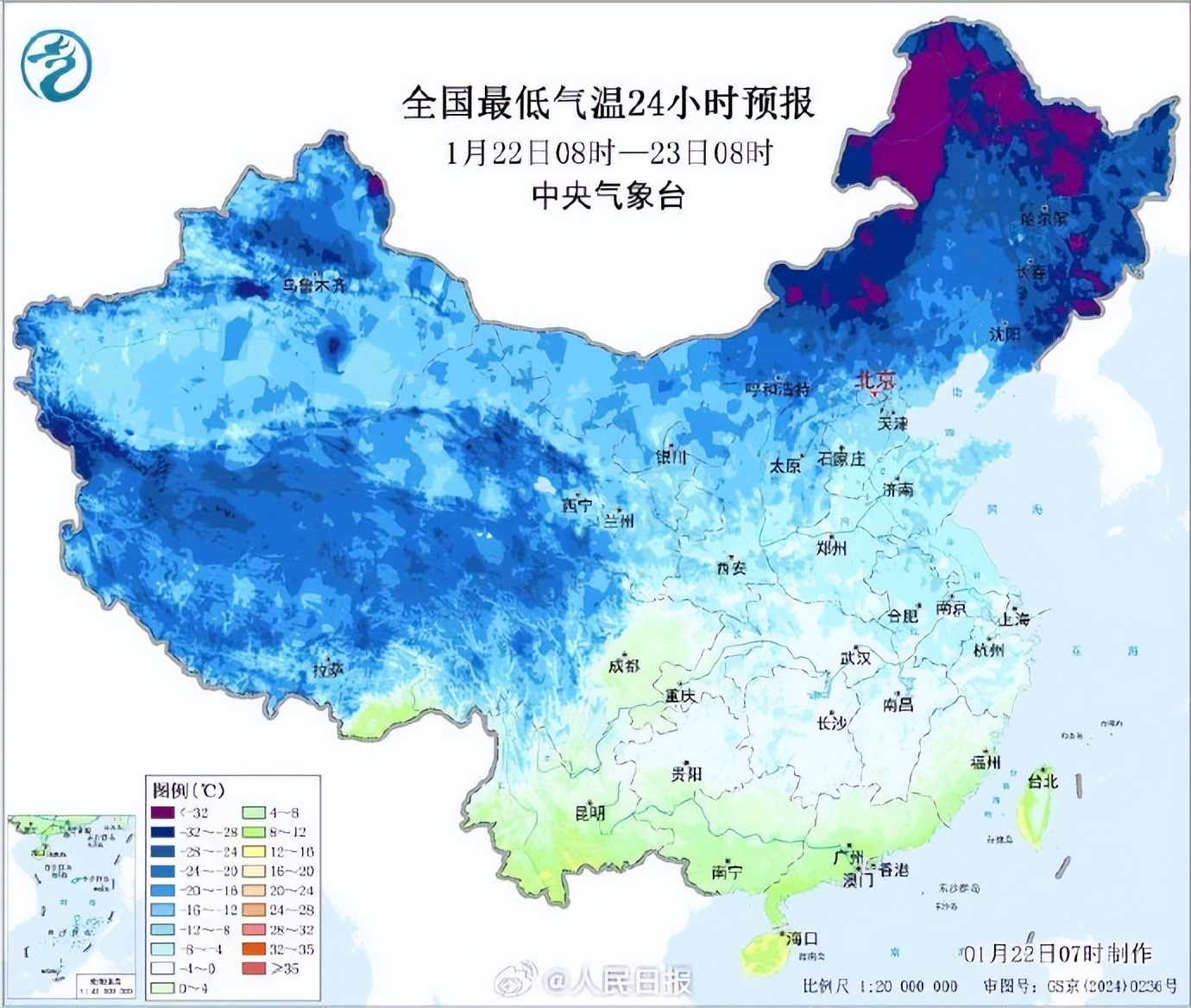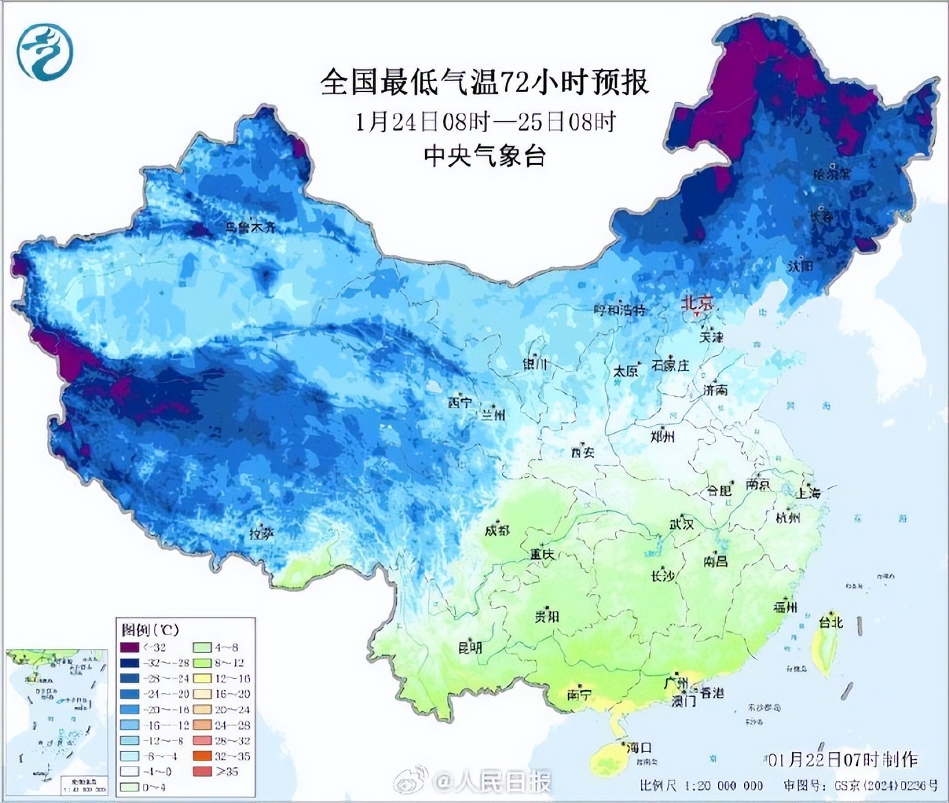 1月22日夜间至24日,新疆西部、西藏西南部的部分地区有中到大雪,局地有暴雪或大暴雪。