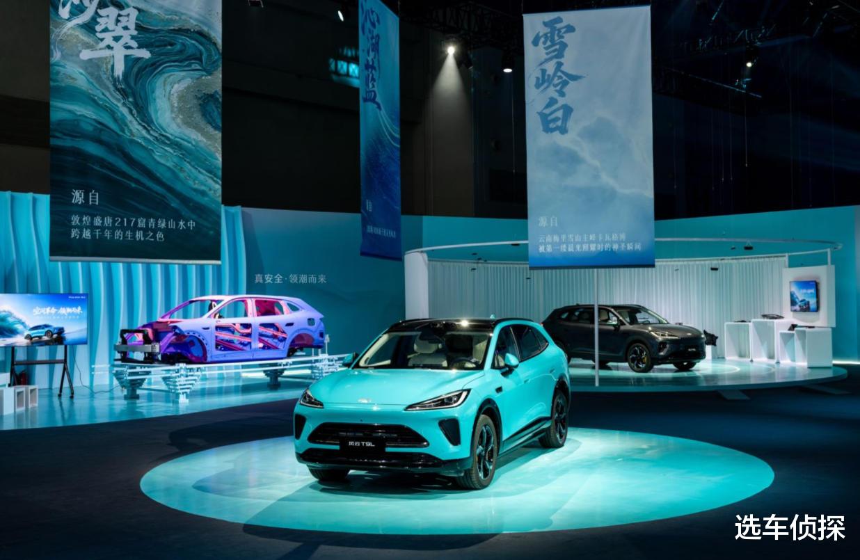 在车色上,风云T9L推出山烟紫、沁湖蓝、丹霞黑、雪岭白、石林灰、鸣沙翠六款自然灵感车色。其中,与敦煌画院深度联动的“鸣沙翠”,取自莫高窟217窟青绿山水壁画中跨越千年的生机之色,让敦煌壁画的生命力在车身流转。内饰则提供暖霞金橙、水墨霁蓝、极光紫境三种主题,分别从张大千《秋曦图》、夏圭《溪山清远图》及“紫星耀空”的意境中衍生而来。