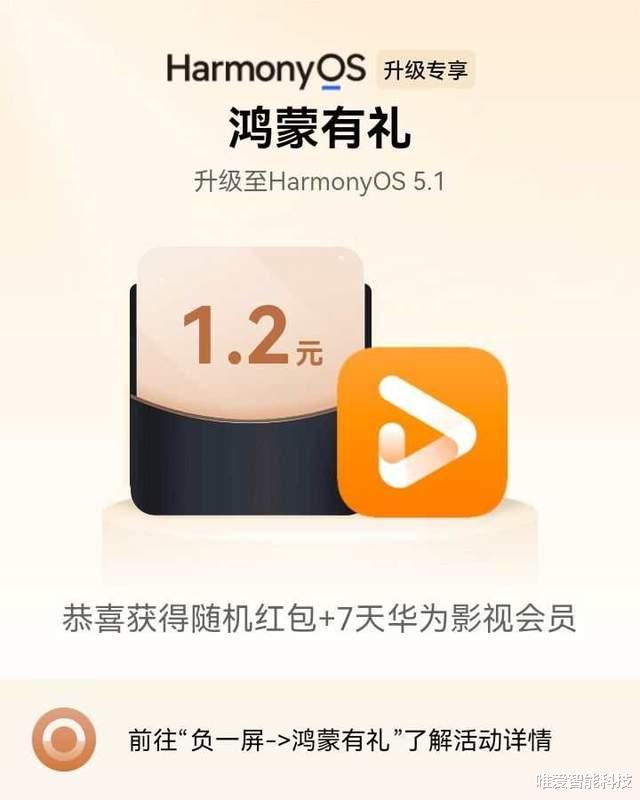 这周我靠鸿蒙有礼的签到,又获得了好几张华为视频会员,权益已经叠加到了一个月之后,这个月的观影自由,华为视频都给我承包了!这两天看到如果你用的也是华为手机,别让这么好的福利沉睡在你的手机里,赶紧看看机型符不符合条件,升级鸿蒙5.1系统去“鸿蒙有礼”看看吧,除了前面提到的华为影视会员,还有各种热门应用月卡可领,签到第30天还能领取热门应用年卡免单券,能换一整年的B站、WPS、芒果TV、优酷、喜马拉雅任一应用的会员。福利超多,不容错过!