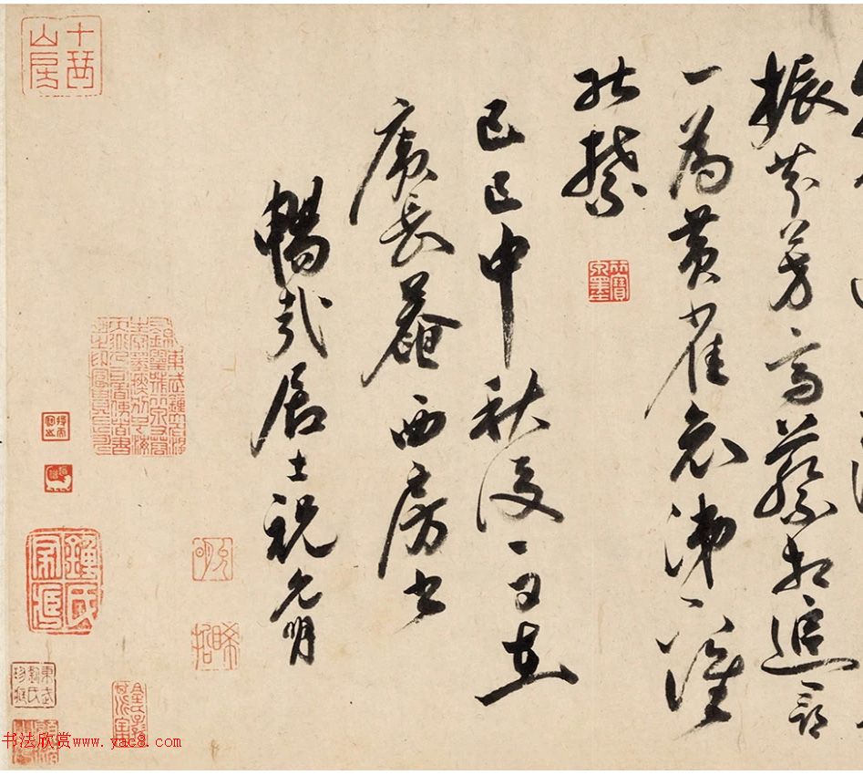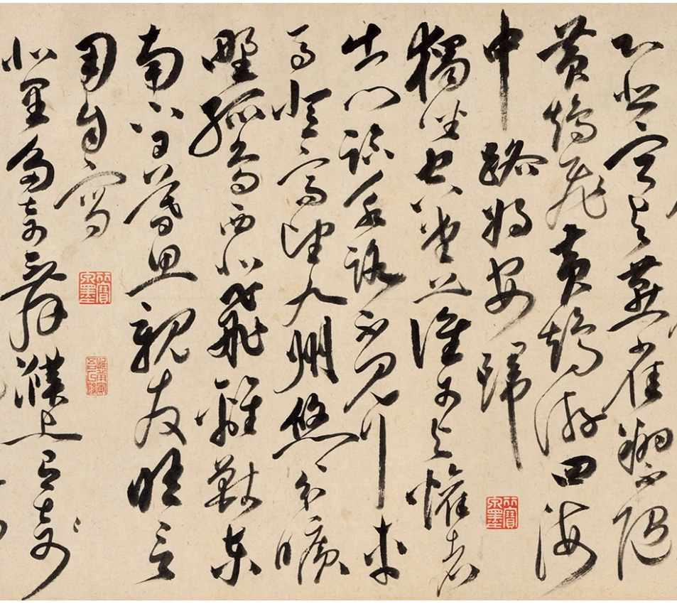 光会用笔,还成不了大家。祝允明草书最让人佩服的地方,在于他那个脑袋瓜里的“构图”能力,也就是结字与章法。他的字,单个拎出来看,常常是“丑”的,东倒西歪,大小悬殊,有的字挤成一疙瘩,有的字又突然撒开欢儿。但奇妙的是,你把眼光拉远,看整篇,哎,它偏偏就和谐了,还特别有节奏感。