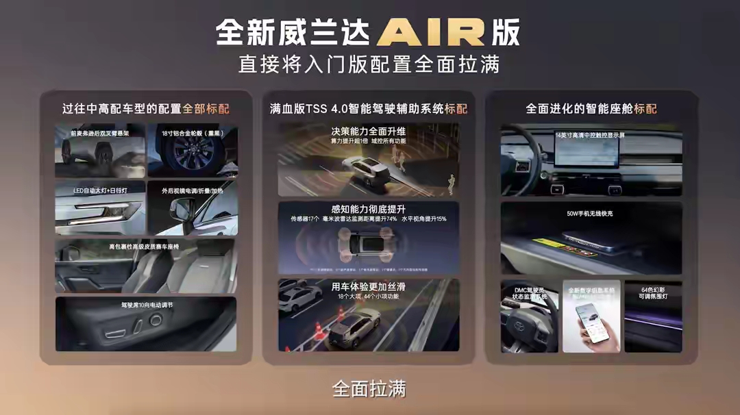 汽车的本质是服务于人,真正的好车,从不以减配换取低价,不以套路透支信任。威兰达AIR版以全球品质为基,以诚意定价为刃,以无忧政策为盾,兼顾家用需求与性价比,为消费者提供透明、省心、高价值的选择。