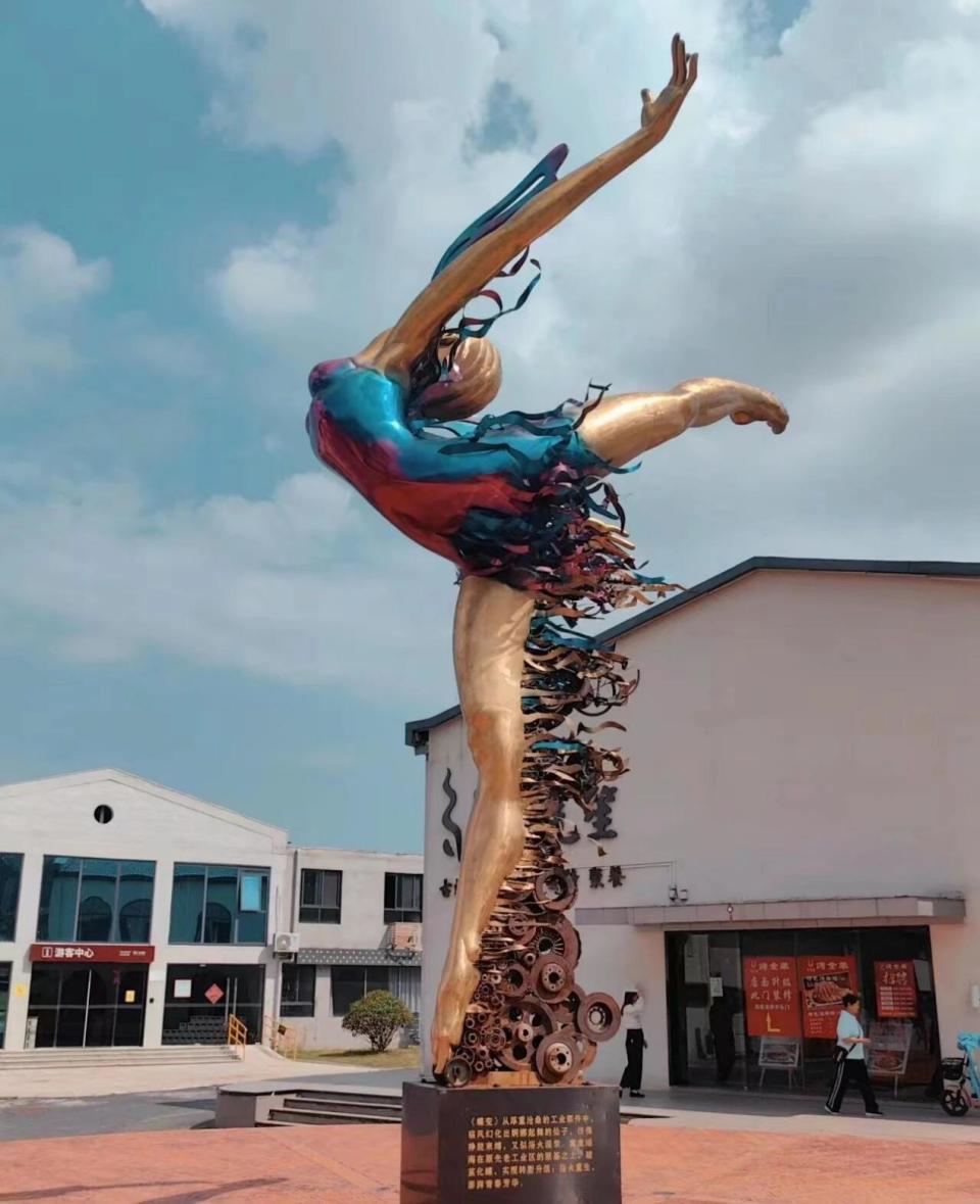 也不由让班长想到瑶海区长江180艺术街区里那座以“蝶变”为主题的大型雕塑——其形象是一组工业齿轮零件正幻化为迎风起舞的美丽女性,象征着瑶海这座老工业城区“更美更好”的城市更新方向。