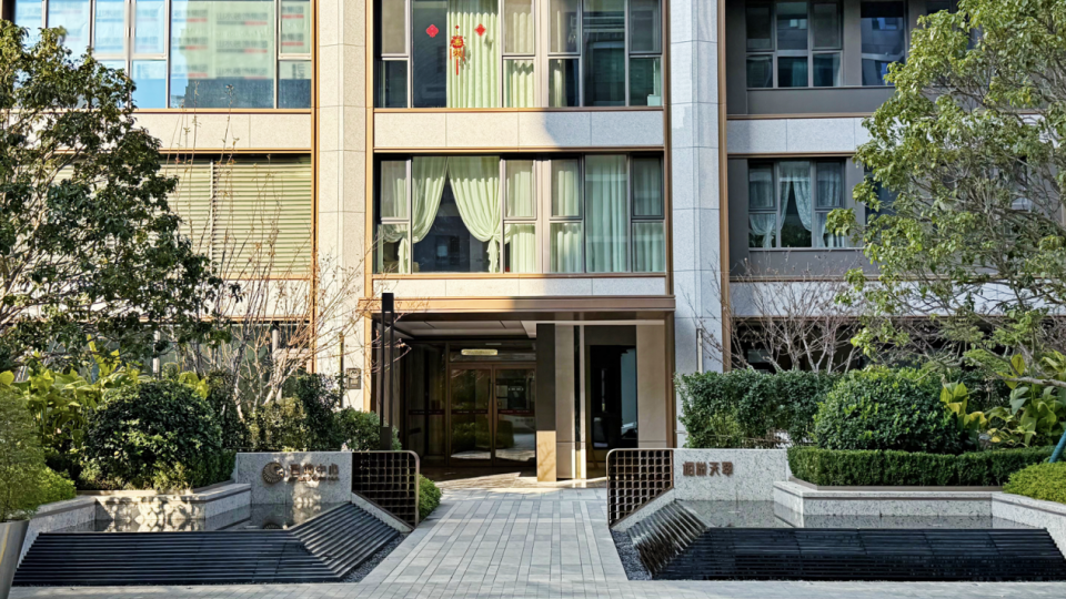 项目外立面无论高层、小高,还是洋房,都是全干挂石材到顶,搭配金属铝板和大面积玻璃,极具高端住宅的质感与气场。