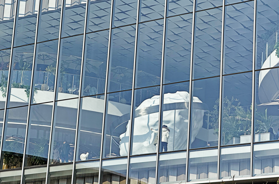 其购物中心不仅有现代商业的流畅轮廓,还有很多让人眼前一亮的创新点,如二楼巨型白色艺术雕塑,悬浮感的设计和玻璃幕墙外的城市天际线同框,极具艺术感,妥妥是自带流量的网红打卡点。