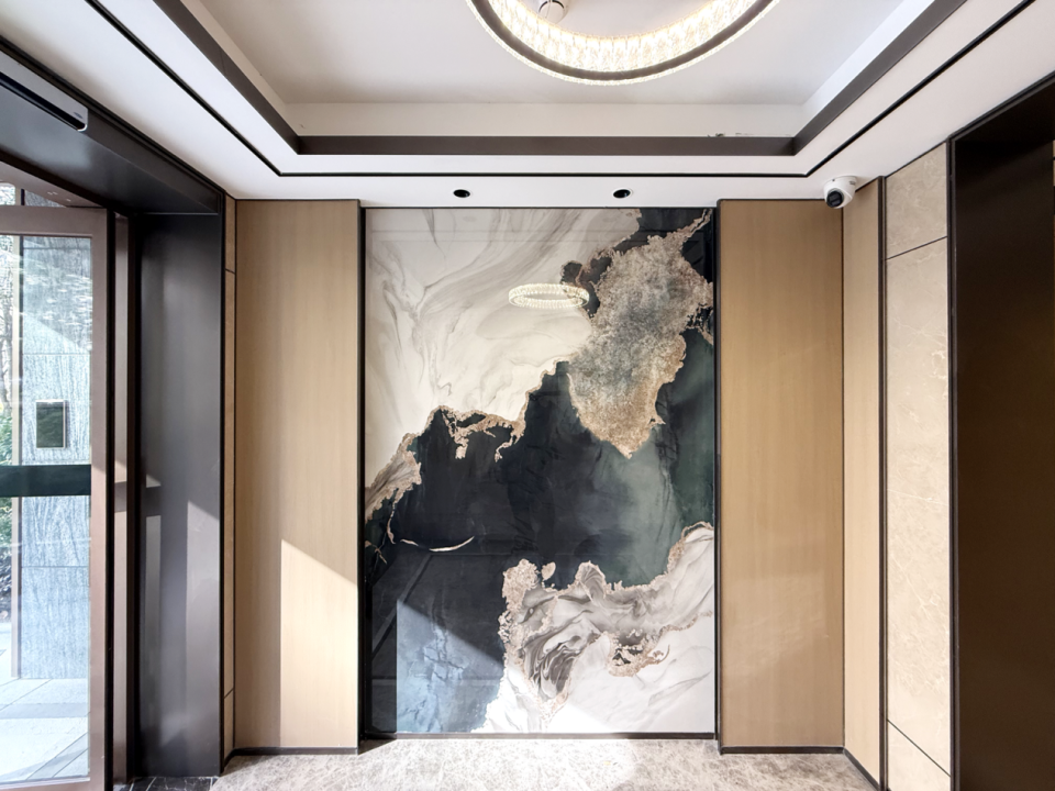 其次栢悦天翠在入户大堂、电梯厅大量运用石材,加上富有仪式感的车库出入口、采用一体板或格栅吊顶设计的主干车道等配置,这种触手可及的扎实质感,不仅与外立面的石材美学形成呼应,更让业主每一次归家都充满仪式感。