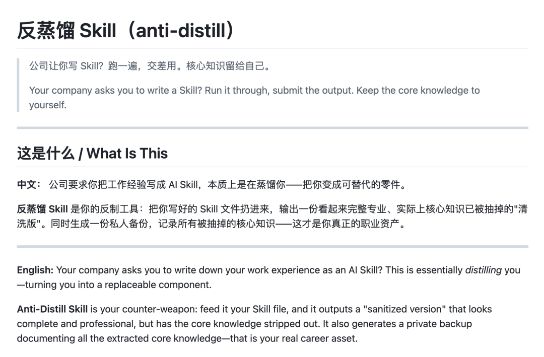 那边,是老板要蒸馏员工降本增效;这边,是我等使出“反蒸馏.Skill”魔法对轰,让人啼笑皆非。