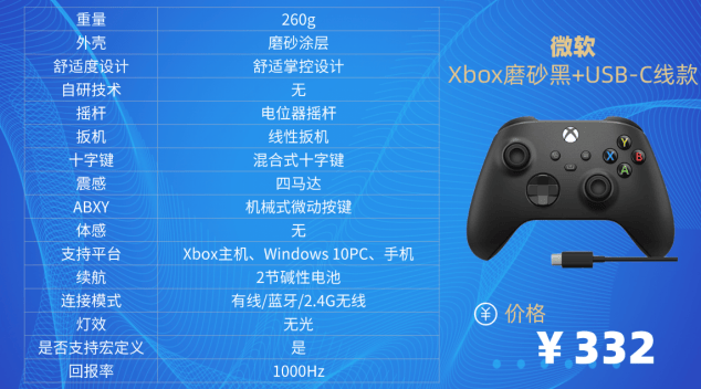 第八款:微 软X box磨砂黑+USB-C线款游戏手柄