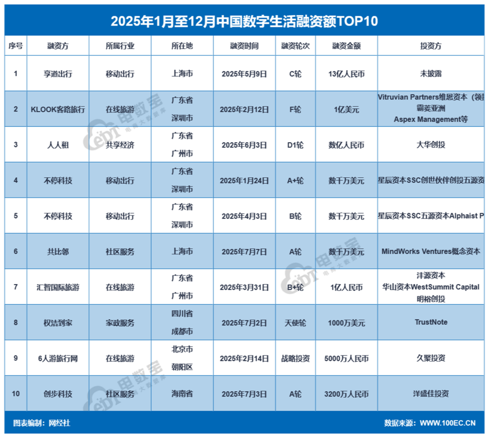 3月18日,我国“一带一路”TOP10影响力社会智库——网经社电子商务研究中心发布了《2025年度中国电子商务投融资数据报告》,也是本系列报道连续第15年发布,报告披露了《2025年数字生活融资数据榜》。