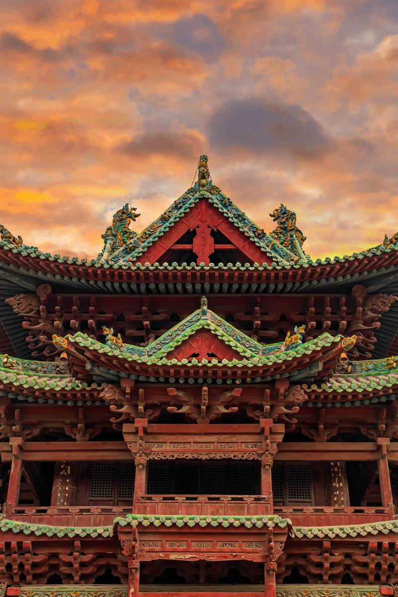 后期指导:教调"古建暖棕调"(强化历史厚重感)、"人文橙黄调"(突出市井烟火气)、"琉璃冷蓝调"(展现脊兽的精致美感)。真实案例:介休摄影师老李:"导师帮我规划了'袄神楼→古街→后土庙'的拍摄路线,还教我用'长曝光'拍'风吹动灯笼飘向古建'——照片里灯笼与飞檐相映,特别有'古今对话'的感觉,作品被《中国古建筑摄影》杂志选用!"