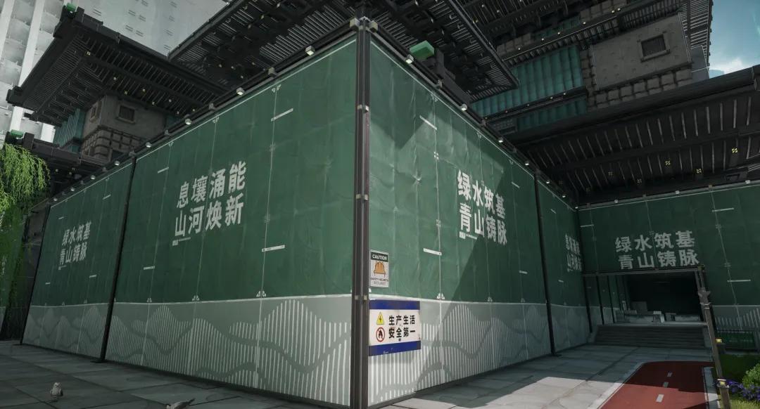 但也正因如此,游戏反而腾出了手,去展现更多中国现代化的东西,比如说城市里到处可见的标语汉字。这些字不同于国潮概念里的那种刻意追求的“酷炫”设计,就是最常见的宋体和黑体,但却给人一种正得不能再正,独属于现代化中国才有的感觉。