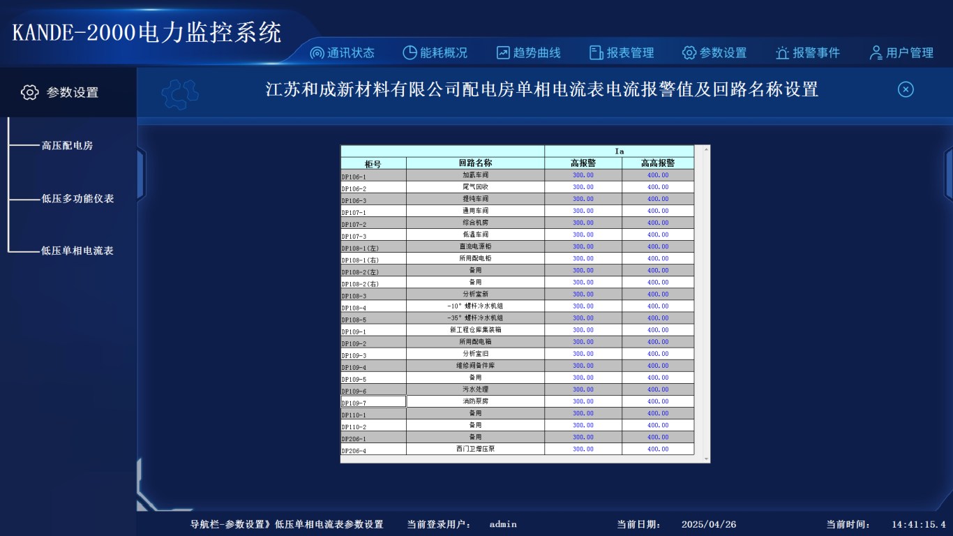 本功能只能更改回路名称和电流报警,柜号是固定无法更改。更改后自动保存。