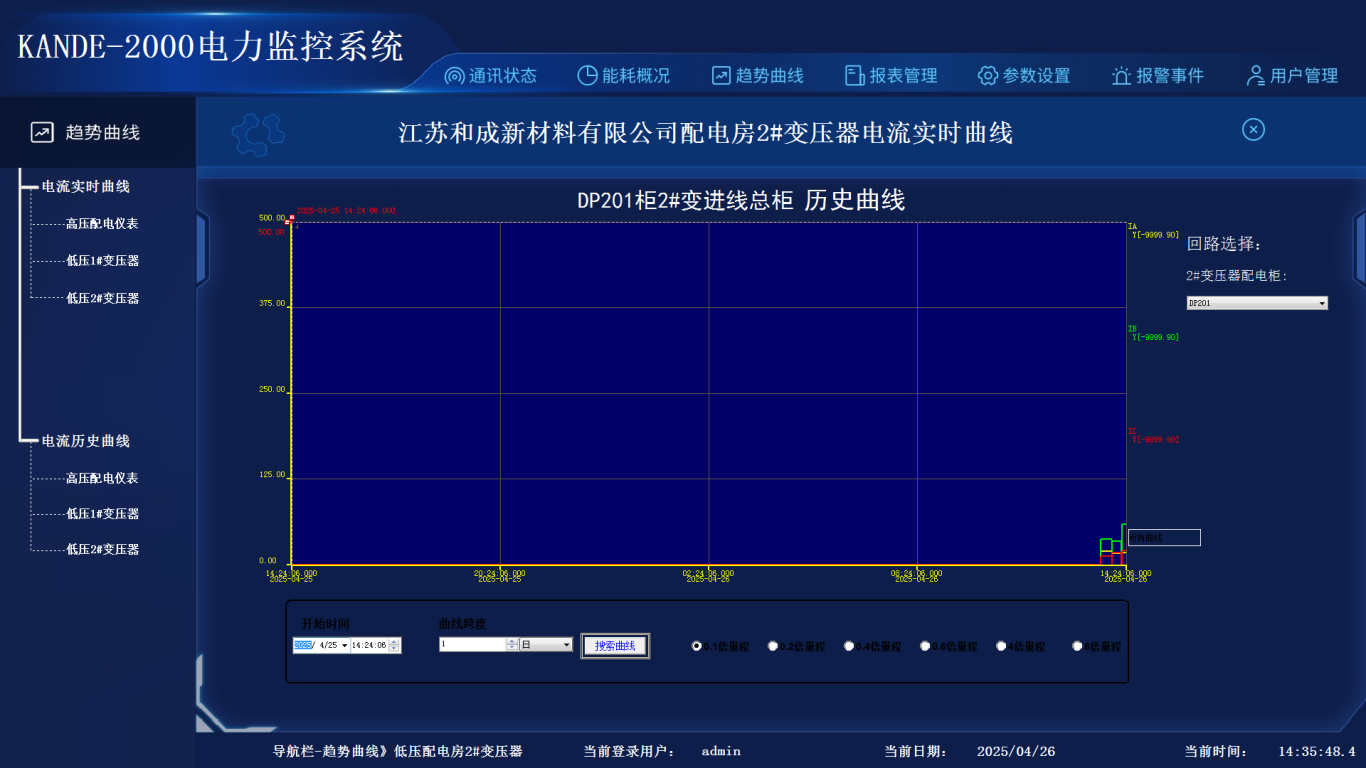 此为一次图显示三相电流,界面显示数值均为实时数值。