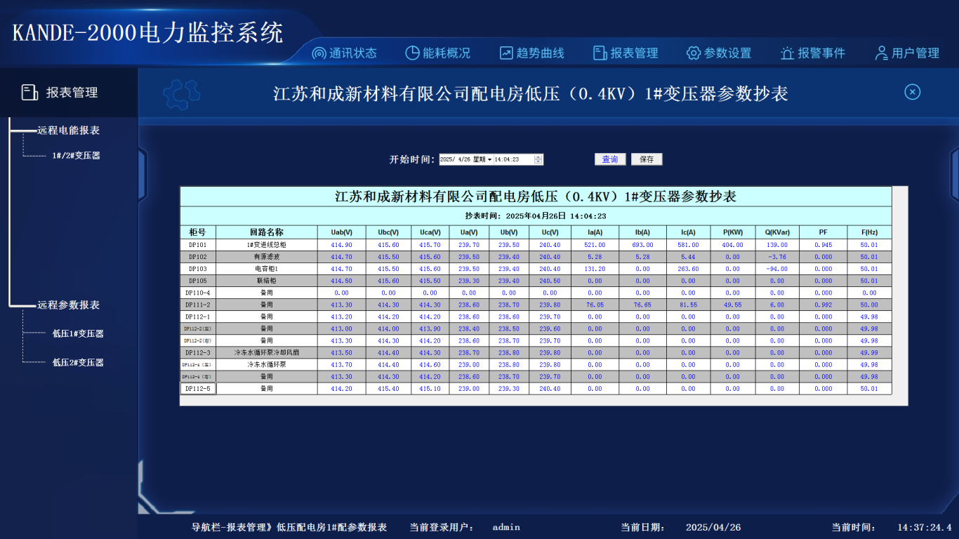 电能报表可以查询任意时间段的用电量,选择查询时间,点击查询则可查出设定时间段的电能。