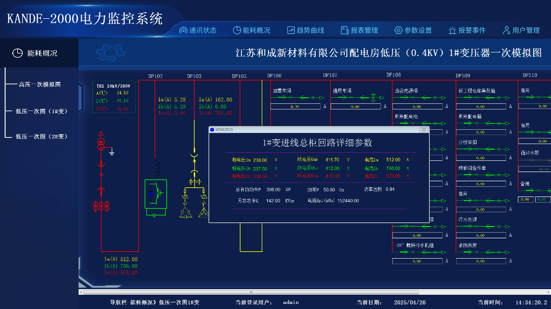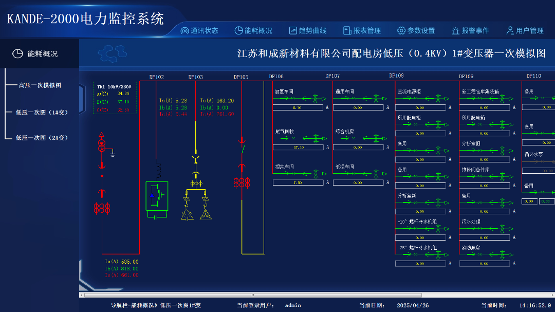 点击顶部能耗概况,然后在左侧导航栏中选择高压低压一次图进入系统一次图。
