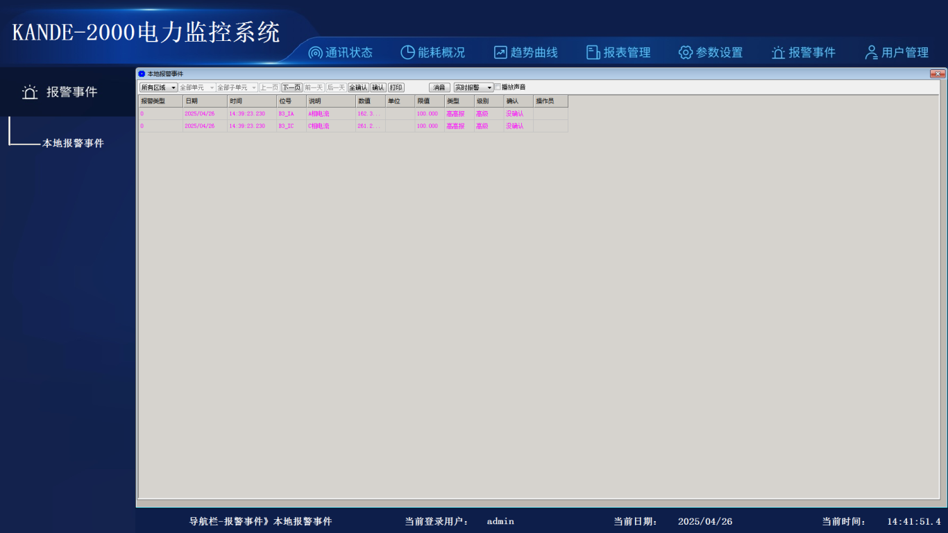 点击顶部报警事件按钮,在左侧导航栏中再次选择相应的遥信、遥测报警。