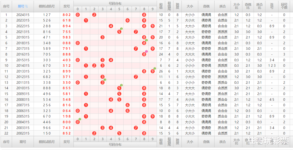 数字"8"的绝对统治:该数字在历年315期中出现频率极高,在百位表现尤为强势