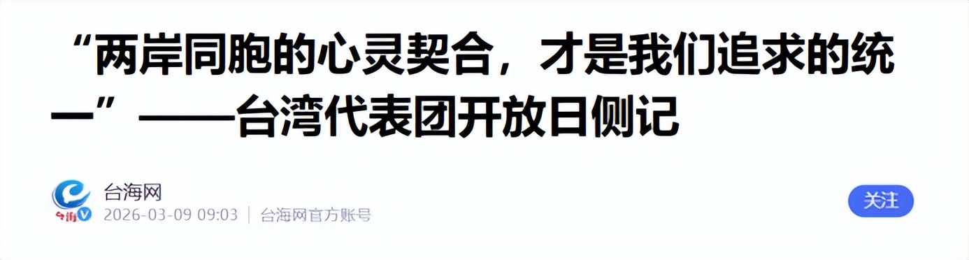 周琪代表的那句话值得反复品读:“我们追求的统一不仅仅是形式上的统一,更是两岸同胞的心灵契合。”