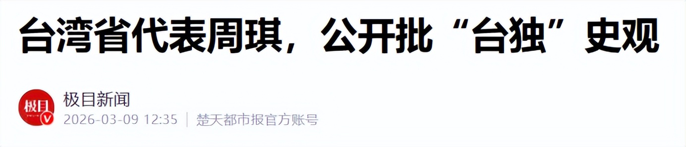 台湾省代表周琪,公开批“台独”史观——极目新闻
