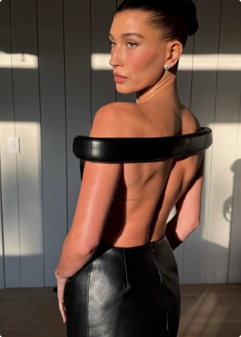 海莉这次穿了紧身皮裙登场,纯黑贴体款,把身材线条勾勒得淋漓尽致。