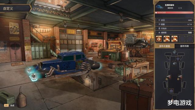 但人车合一的捆绑性质也让背包的ui极其难受,人的背包就是车的容量,只有少部分关键道具不占空间,额外车厢也要占重量,前期经常遇到打完没位置放战利品的事。在商店买装备的时候,虽然有对比功能,但你对比的是哪个部件呀,还要特意跑去车库地方看,部件只有关键数字看得懂,范围和距离都要上手试才知道,问题游戏里也没几场战斗呀,我宁愿花钱买背包买roll,也不敢买个不知道啥用的武器压仓库。